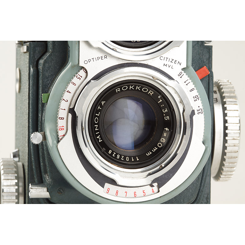 4x4cm, rare Rolleiflex 4x4 copy in very fine original condition (shutter needs attention) with Rokkor 3.5/60mm no.1102628, blue folding finder, matching cap and case
