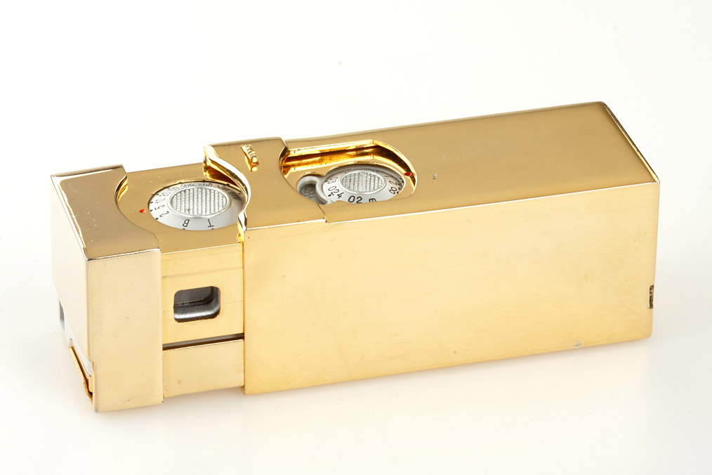 Minox A camera and cigarette lighter built into gold plated brass housing, very attractive and rare set