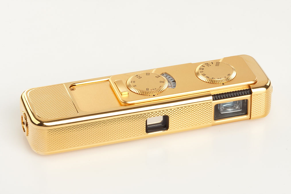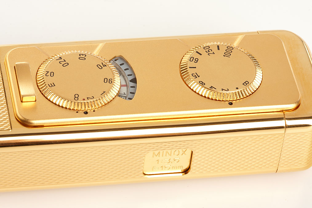 new in box, complete with all papers, only 250 of these gold plated brass commemorative models of the Minox AX were produced in 1994