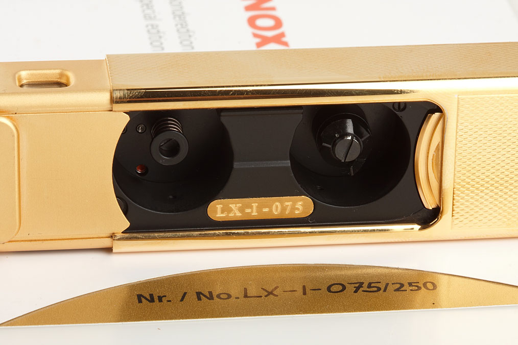 new in box, complete with all papers, only 250 of these gold plated brass commemorative models of the Minox LX were produced in 1994