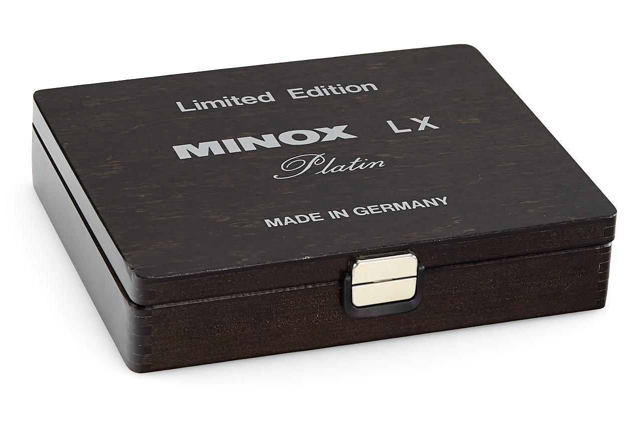 exclusive limited edition Minox from a batch of only 1000 cameras, in near mint condition, with case, chain, papers, in wooden presentation box