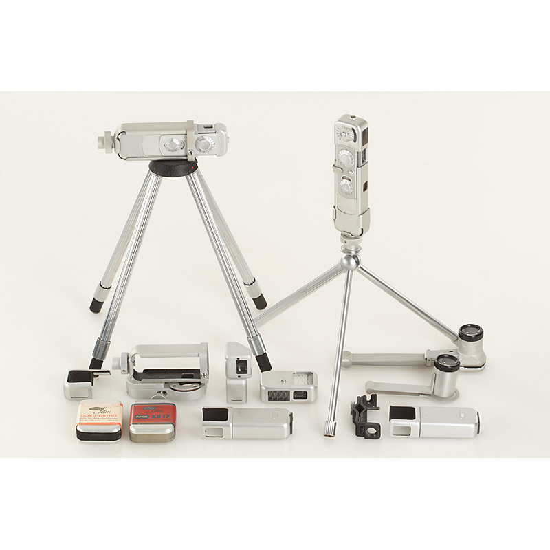 extremely rare original Minox demonstration case with blue velvet inlet for Minox A no.141001, Minox B no.831912 and various accessories