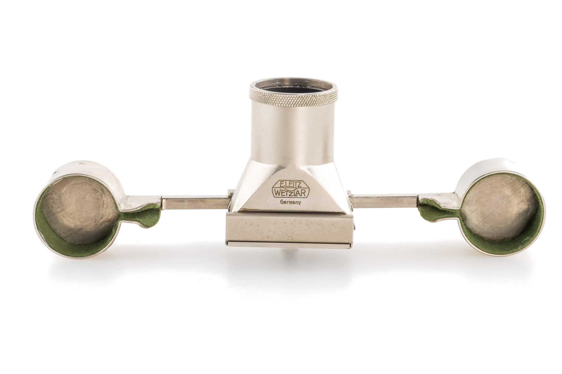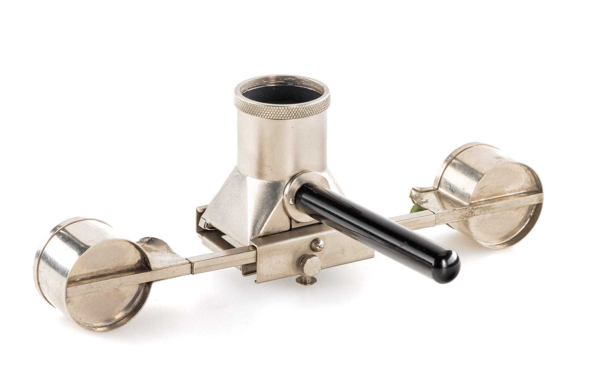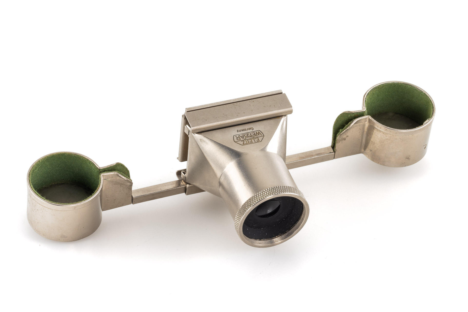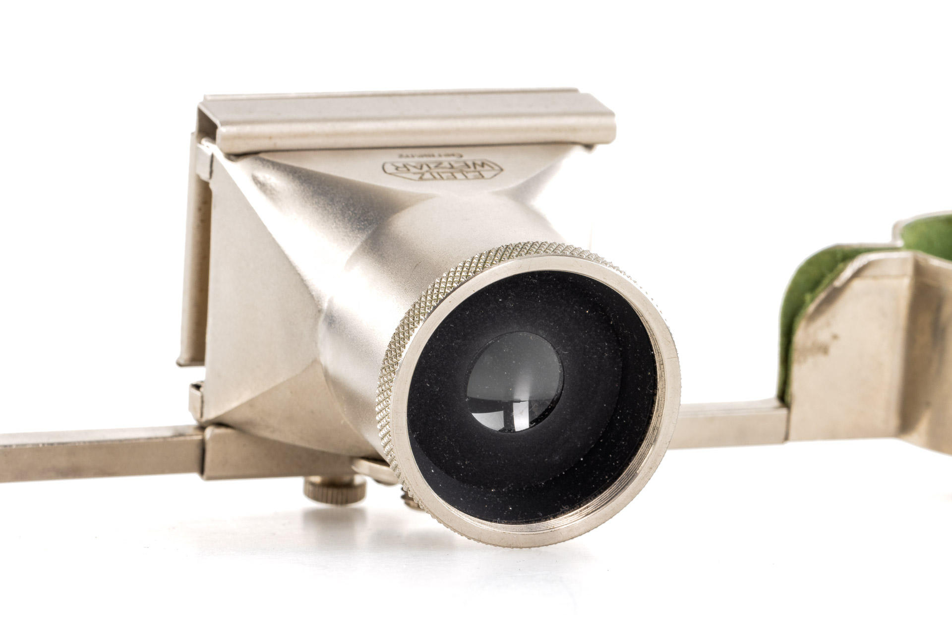 very rare film viewing magnifier for 250 exposures in near mint condition, complete with bakelite handle, film holders, grey painted original wooden maker's box with 'Betrachtungslupe für Kleinbild-Aufnahmen' painted white, with German short instructions