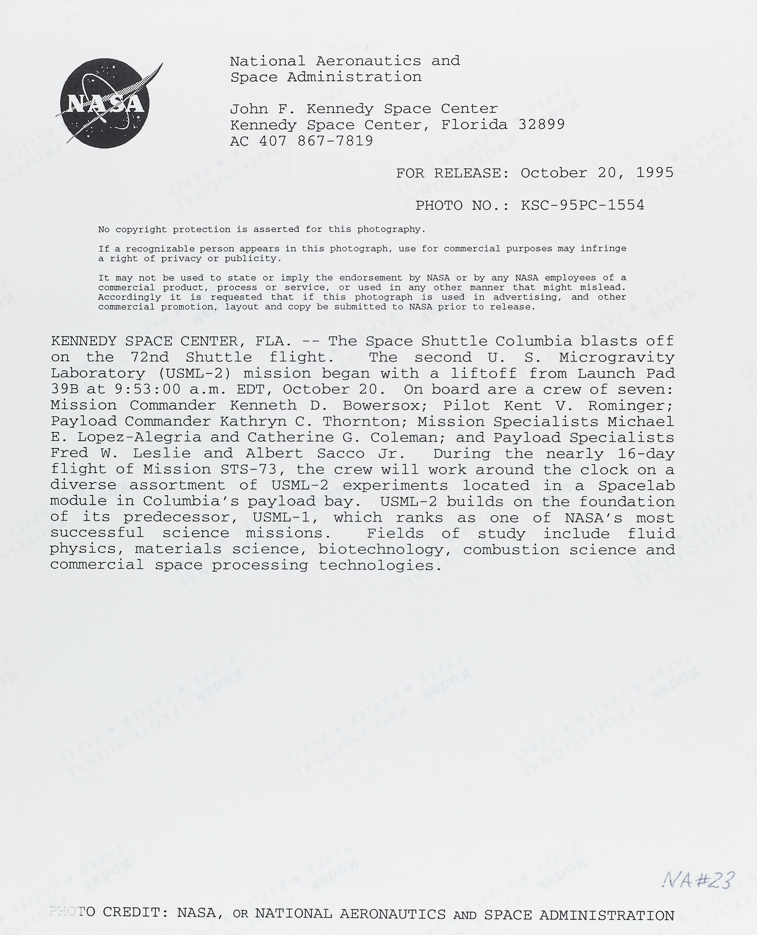 NASA COLOMBIA STS-73 Liftoff, Florida 1995