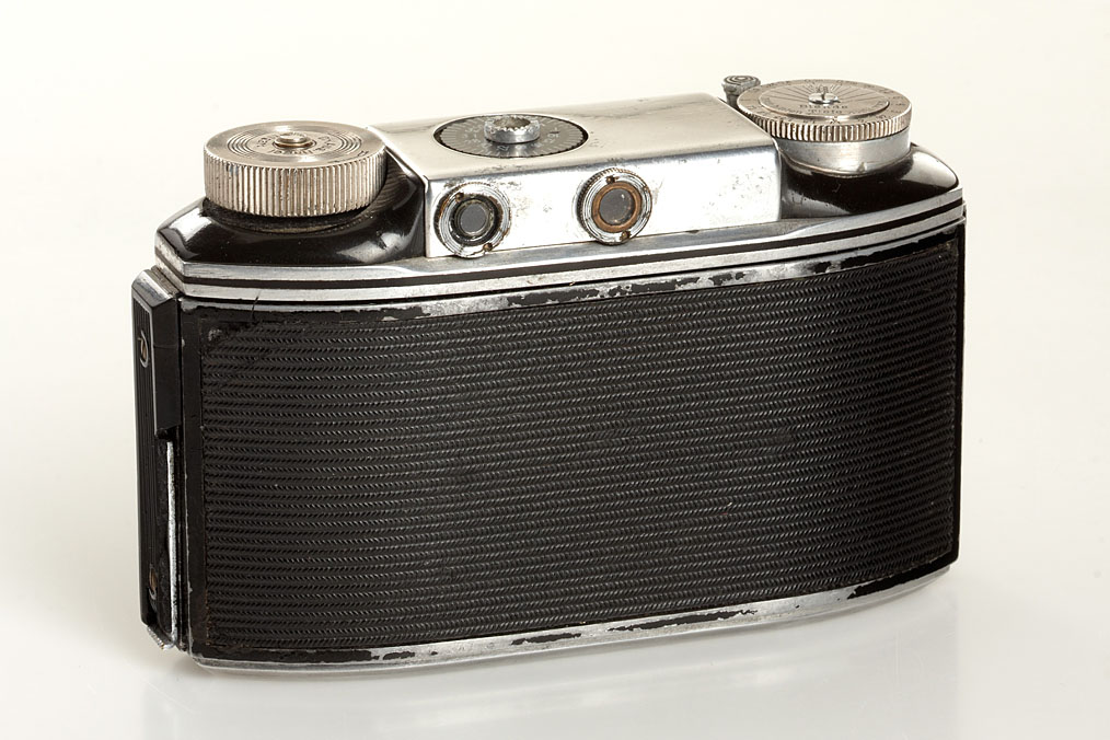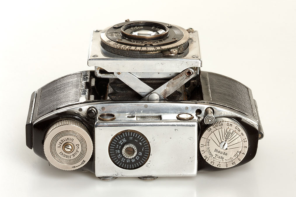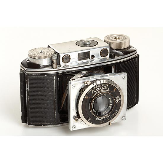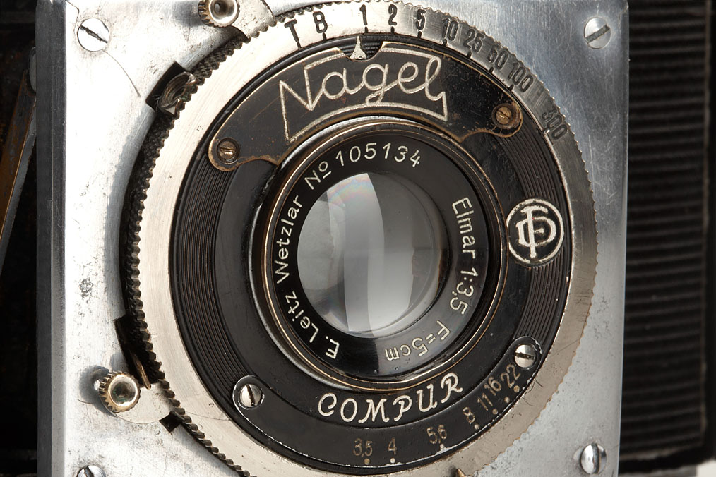 24x36mm, prototype camera will Nagel parts (winding knobs, shutter emblem) in an Agfa Karat housing with coupled rangefinder, Elmar 3.5/5cm no.105134 in Compur shutter - we can not guarantee the authenticity of this camera