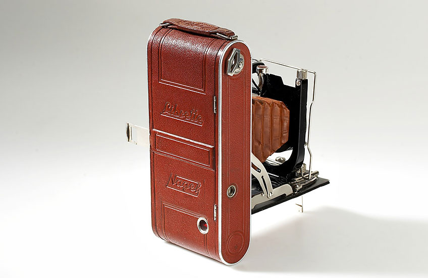 6.5x11cm folding rollfilm camera for 116 film, rare version with brown leather covering and brown leather bellows, Xenar 4.5/12cm no.318747 in Compur shutter, in fine condition