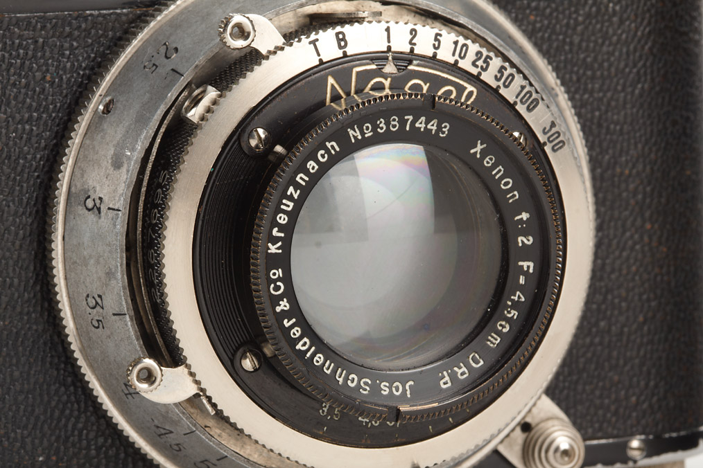 rare export version with feet scale, for 3x4cm exposures on 127 film, rare with Xenon 2/4.5cm no.387443, original cap