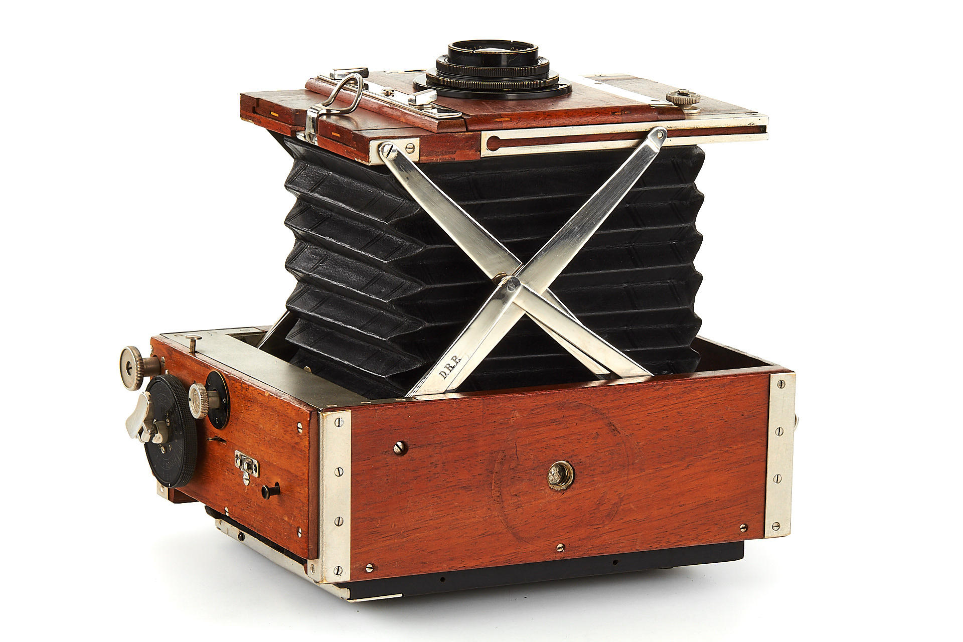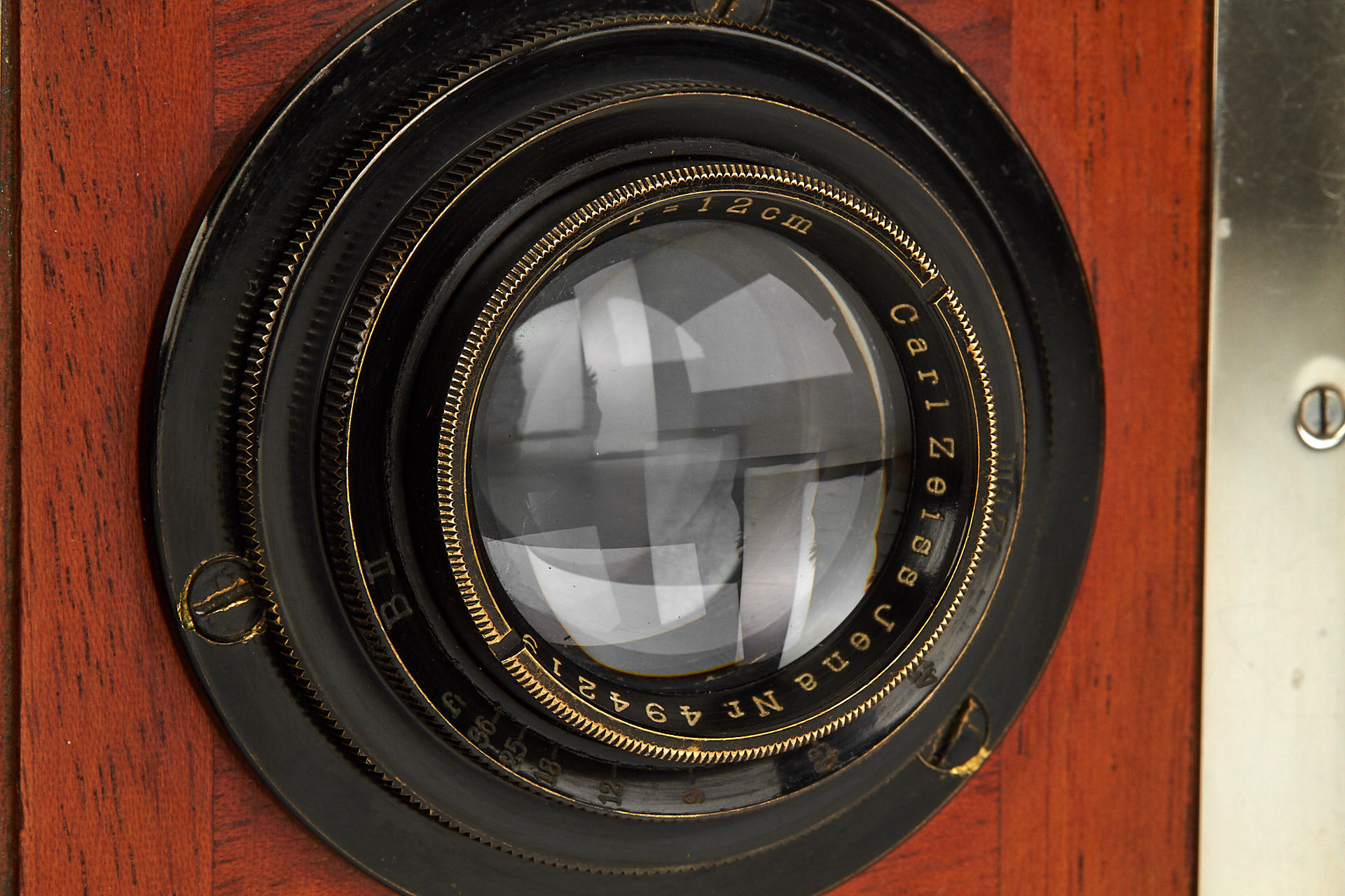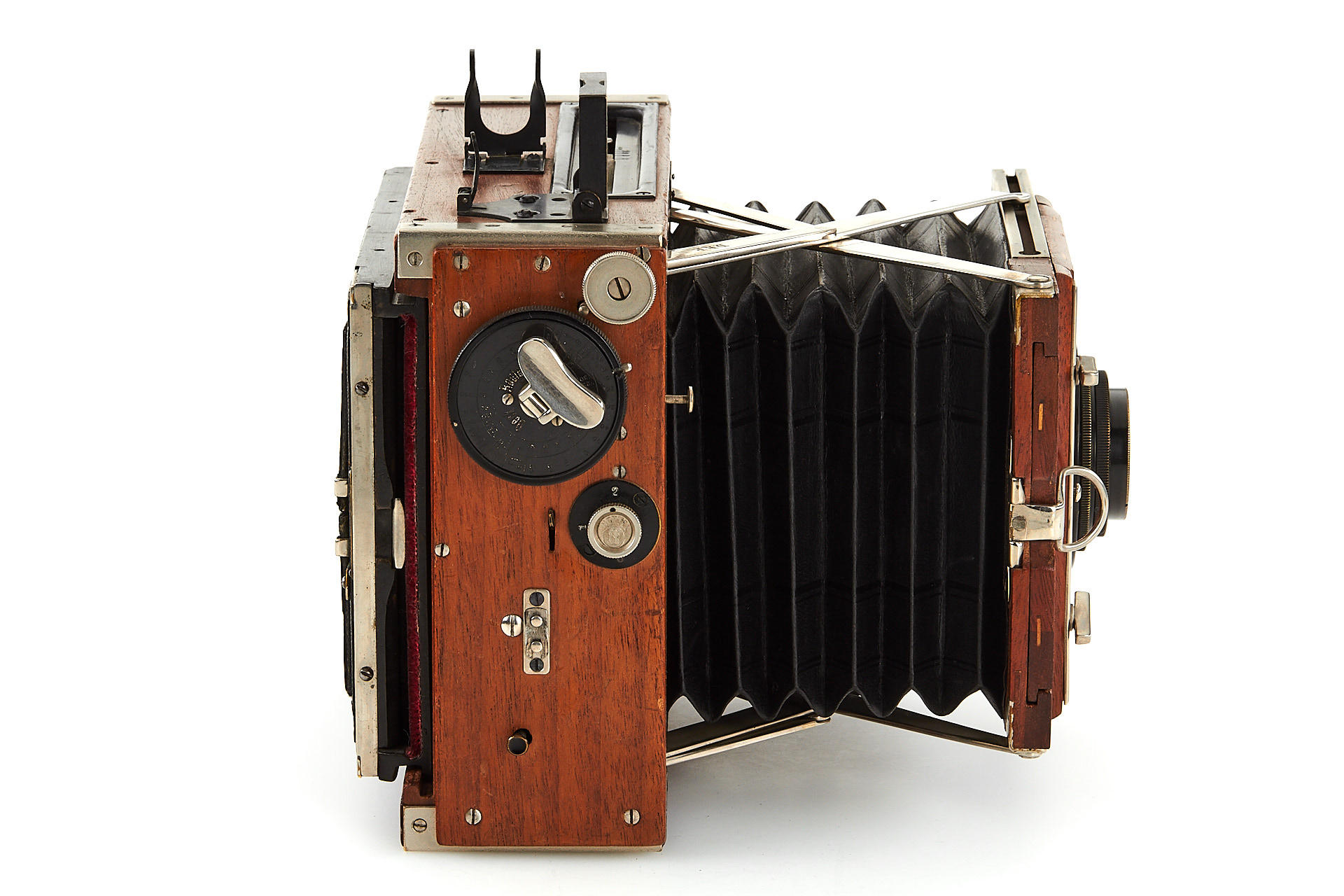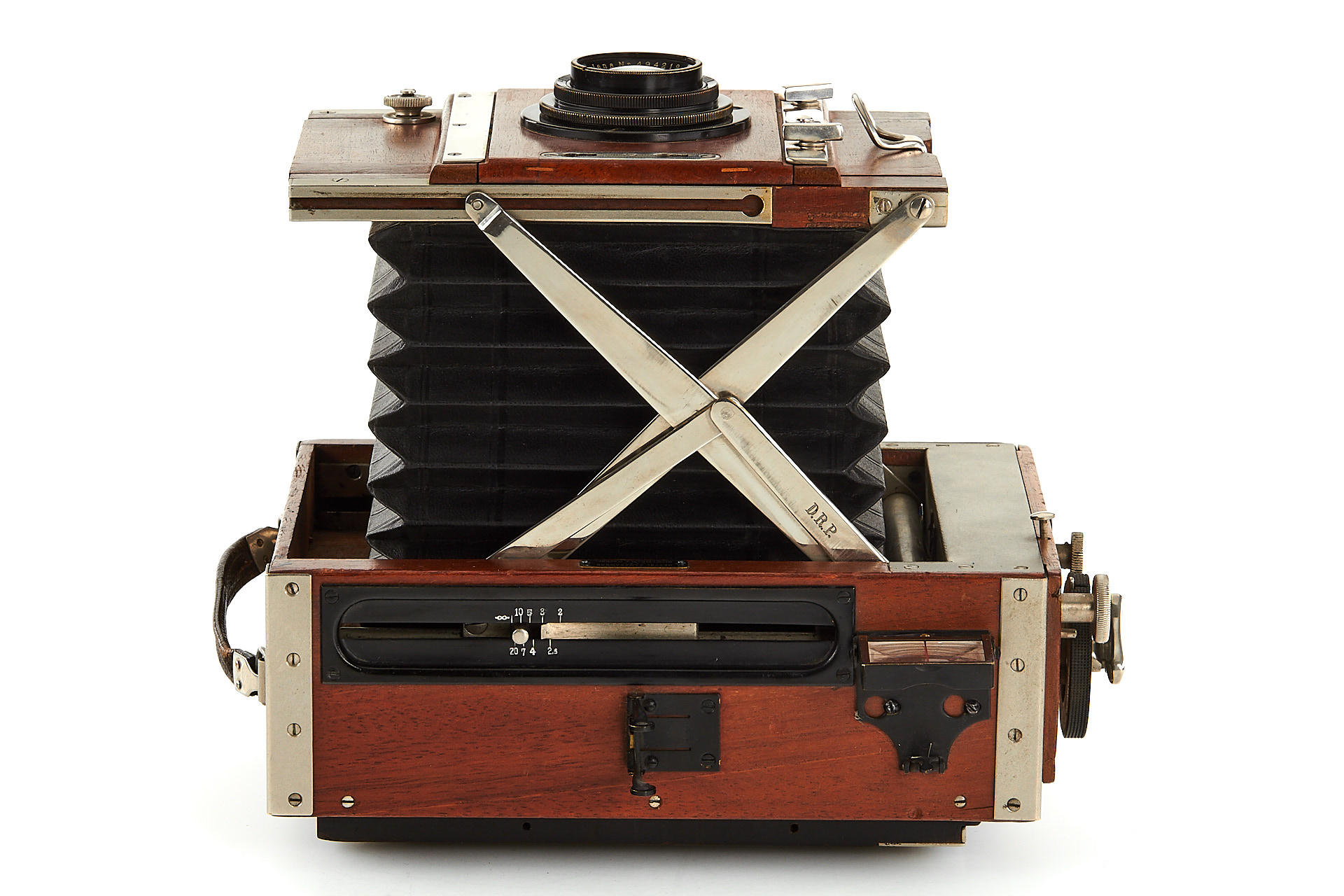 early 9x12cm version in fine condition (missing lock from the back), shutter needs attention, with Tessar 4.5/12cm no.494219, filmpack holder