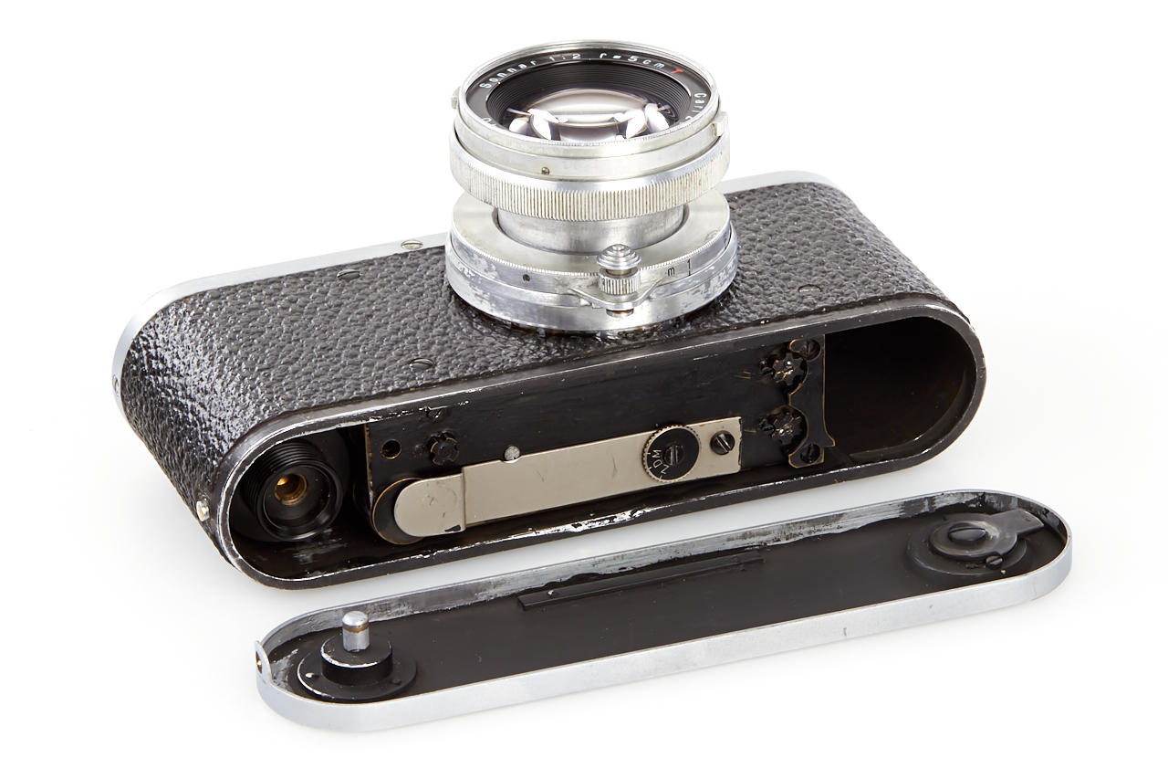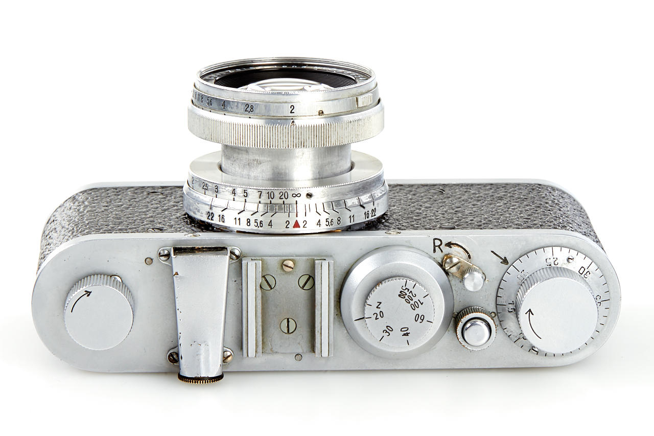 Prototype of the extremely rare early German post-war Leica copy Neuca. The camera has some details similar to the Neuca prototype illustrated in 'LEICA COPIES' by HPR, the top plate is not engraved, 'Standard' version without rangefinder, shutter speeds: Z, 20, 30, 40, 60, 100, 200, 500, unique shutter mechanism, vulcanite covering, no removable back, in fully working condition - it comes with the matching M39 RF coupled Carl Zeiss Jena collapsible Sonnar 2/5cm T no.2686540