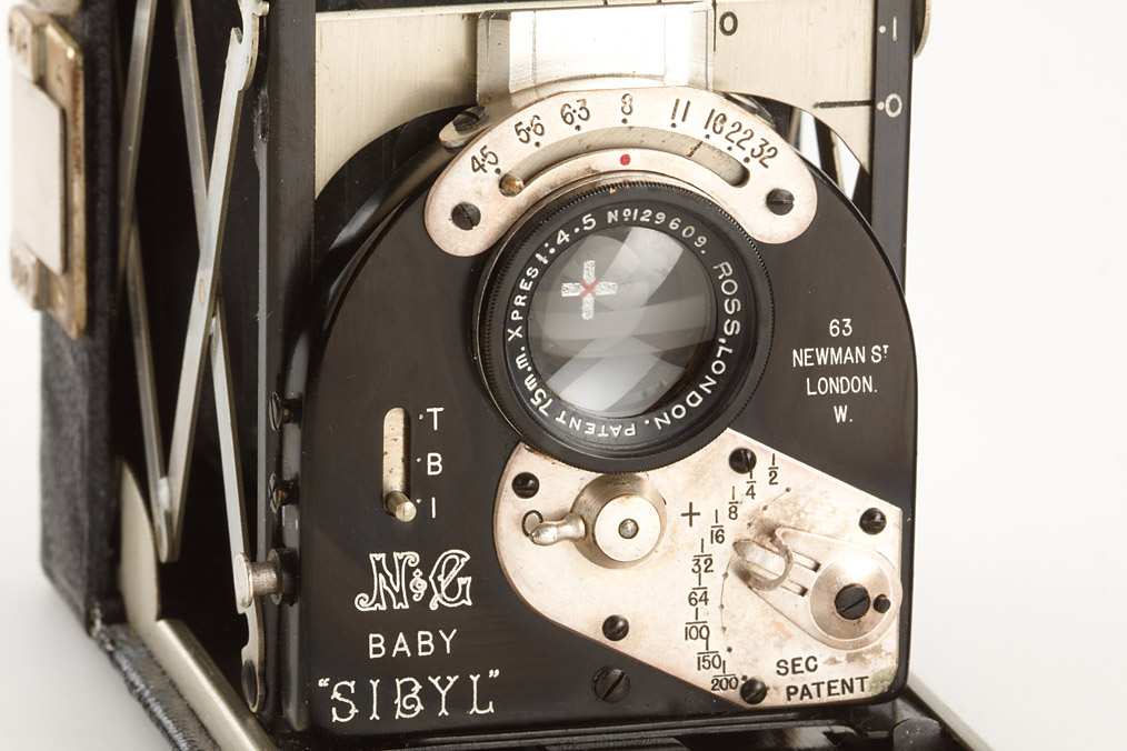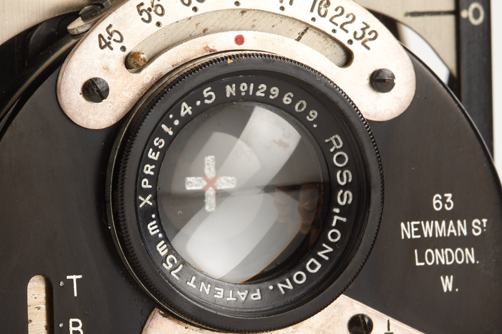 4.5x6cm, for plates in very fine original condition, with focusing screen adapter, Ross Xpress 4.5/75mm no.129609, folding reflex finder, yellow filter, cable release, 3 N&G double film holders, all in matching wooden outfit case, 4 more N&G double film holders in wooden case