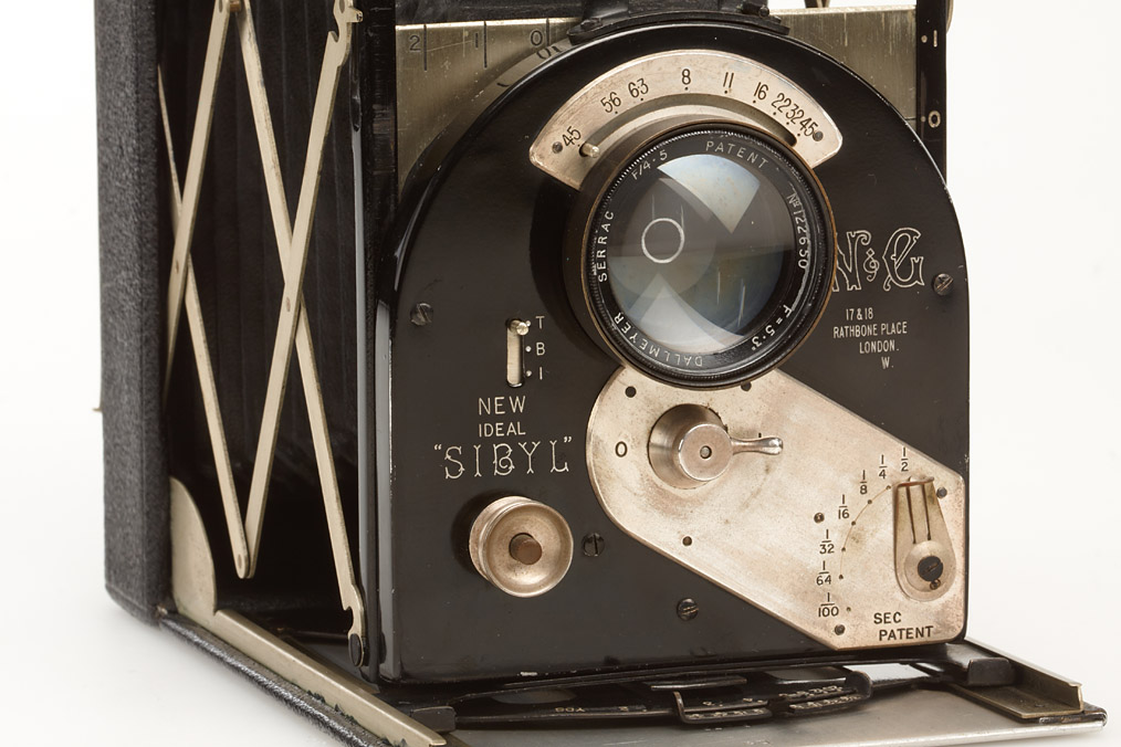 3 ¼ x 4 ¼“ (ca. 8x10cm), rare type in very fine original condition with Dallmeyer Serac 4.5/5.3' no.122650, case, original platefilm magazine, original filmpack holder, 6 plateholders and a metal ready-load back