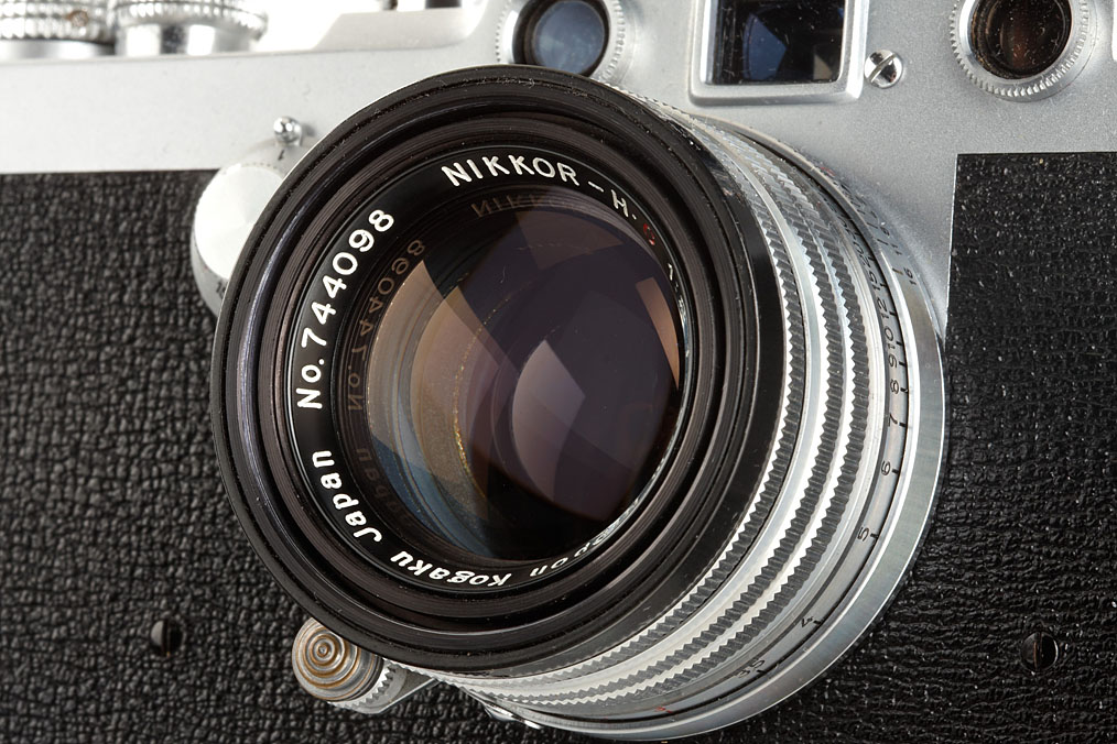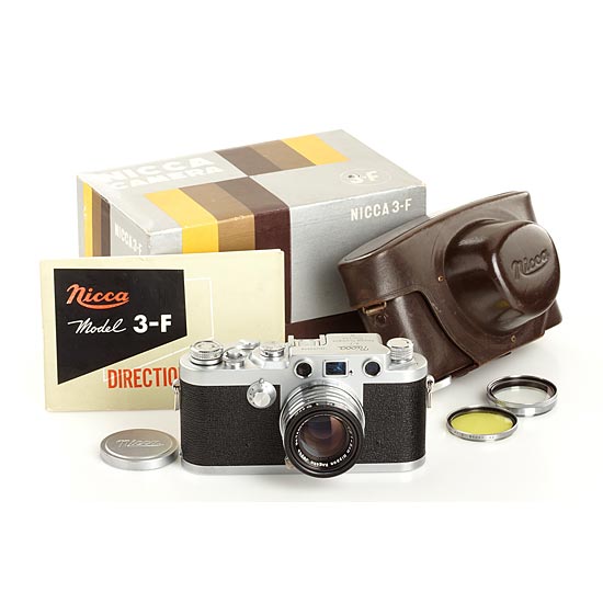 very clean second model, clean finder, shutter and rangefinder, Nikkor-H.C 2/5cm no.744098, black aperture ring, focus to 1.5 feet, Nicca cap, yellow filter, UV filter, ever-ready case, instruction book, maker's box