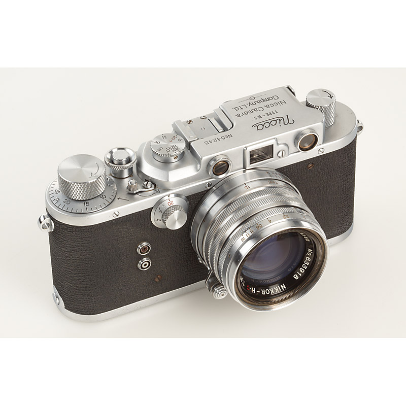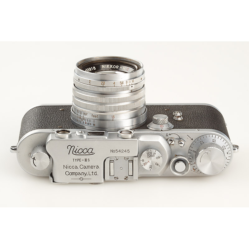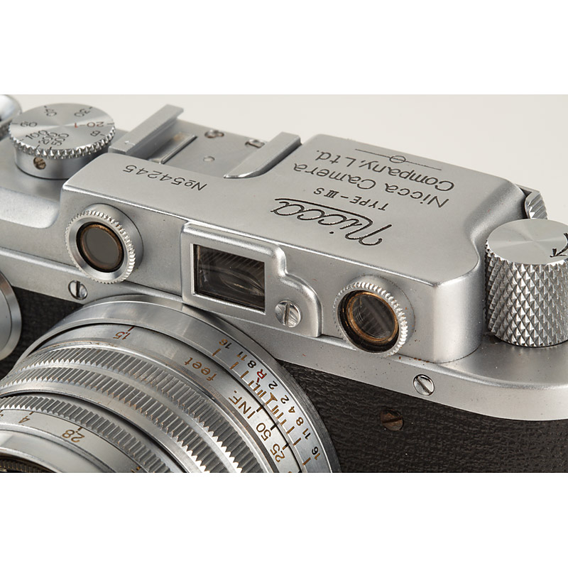 late, Nicca IIIS in very fine condition, matching Nikkor 2/5cm lens no. 633918, Nicca cap, papers, maker's box