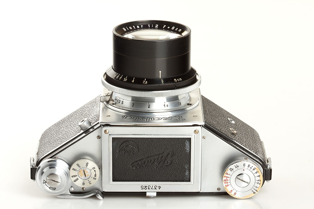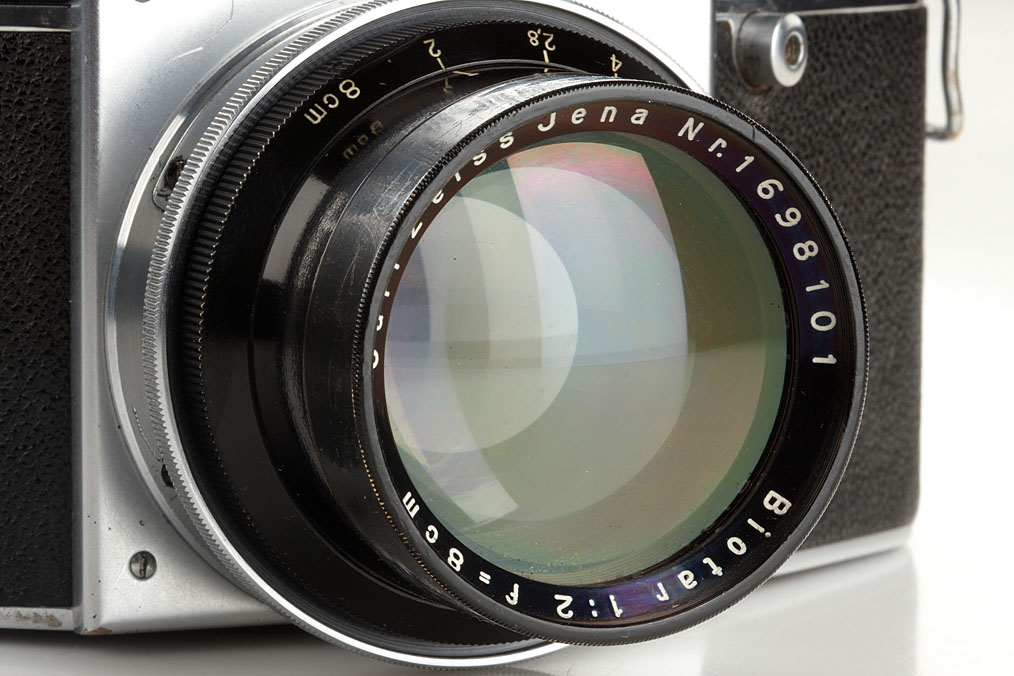 chrome 3rd version in good working order with Biotar 2/8cm no.1698101 (many cleaning marks), original ever-ready case