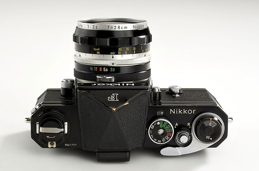 very rare and late 'Nikkor' F (export camera for Germany) with Nikkor Eyelevel finder type 5R, Nikkor-H Auto 3.5/2.8cm no.342876, clean lenses, cap