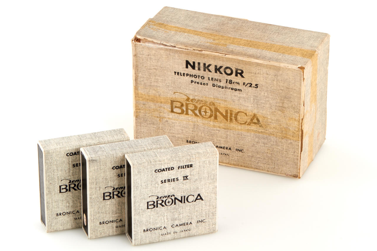 one of the rarest lenses for Bronica, based on the rangefinder 2.5/18cm, only approximately 180 of these lenses have been issued, in beautiful condition, clean optics, with original good, front and rear caps, maker's box (worn) and three boxed filters