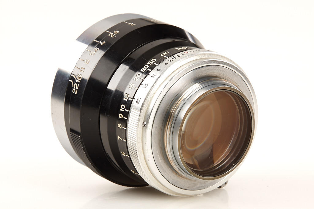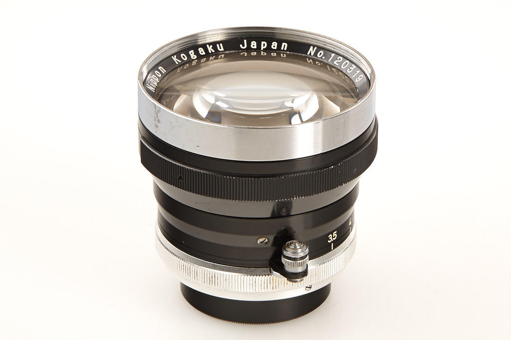 extremely rare and sought-after Nikkor in original M39 rangefinder coupled screw mount, clean lenses, front and rear cap, original hood (small crack in thread), chrome UV filter, case