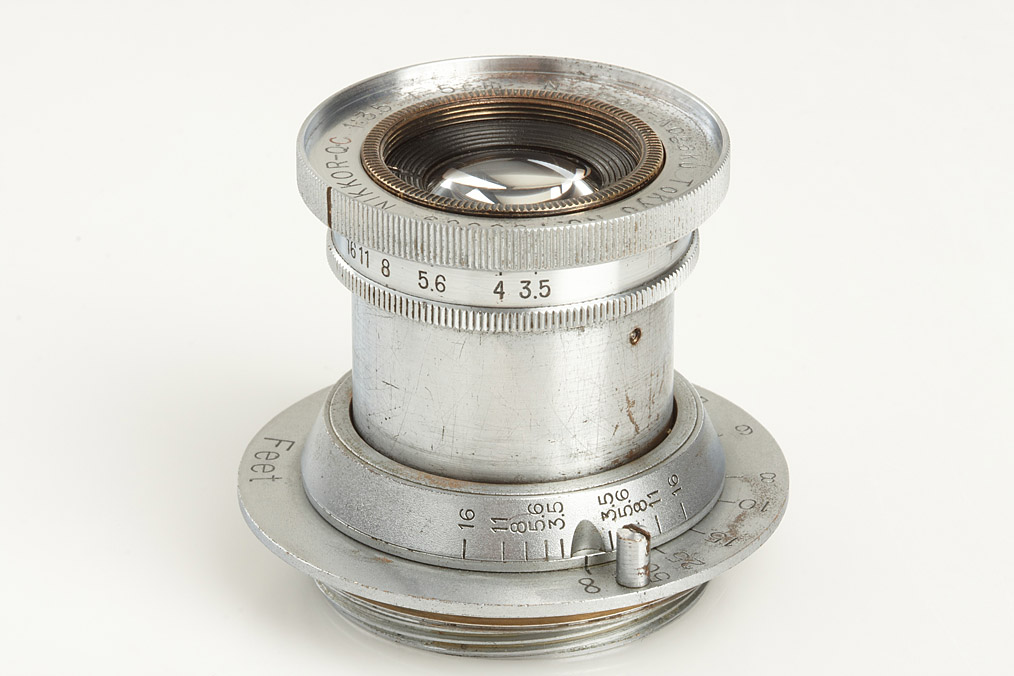 rare and early RF coupled Tokyo Nikkor with original M39 screw mount, clean lenses, in Feet, black Tokyo front cap