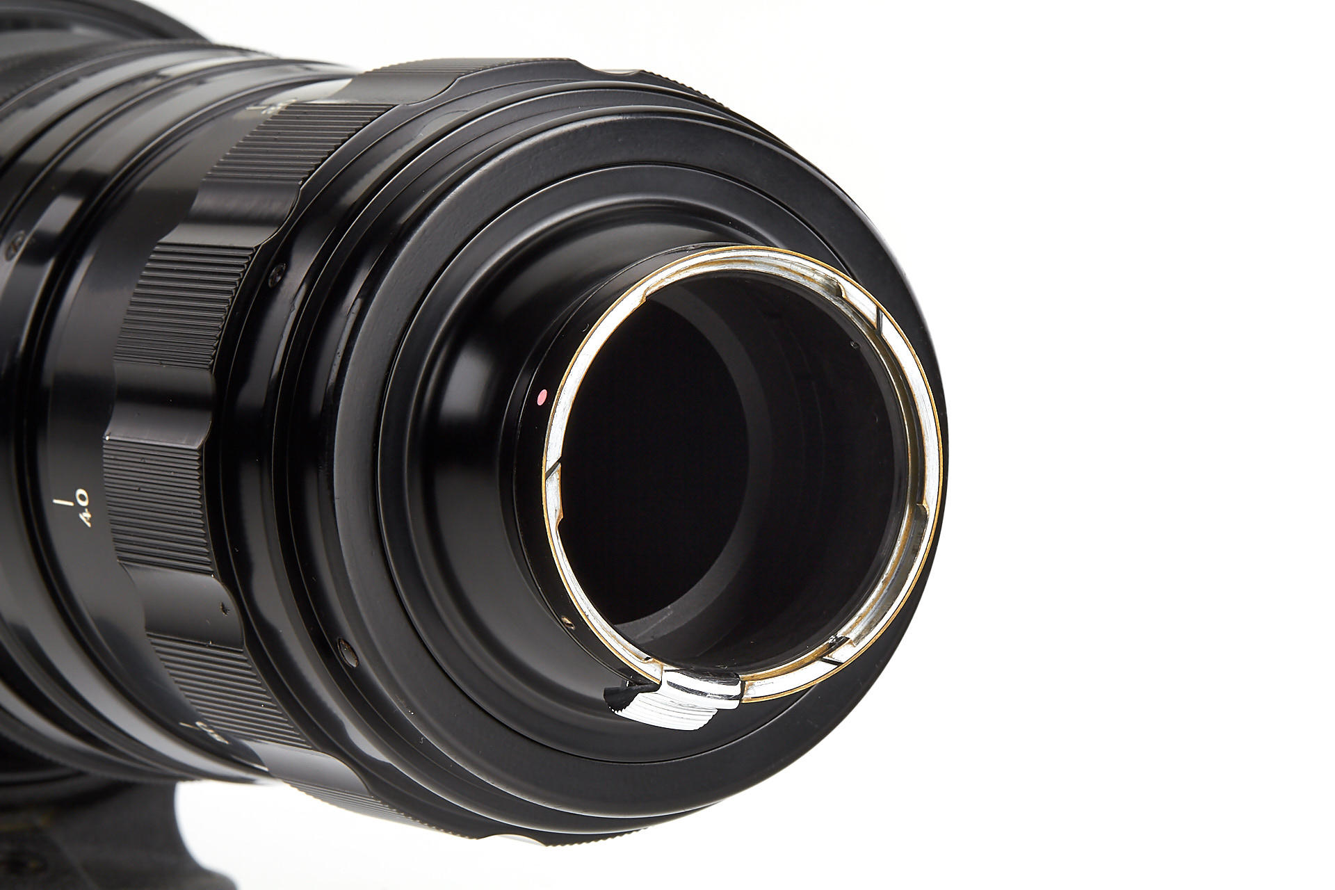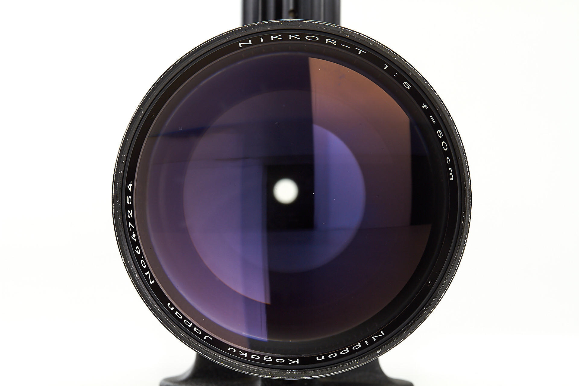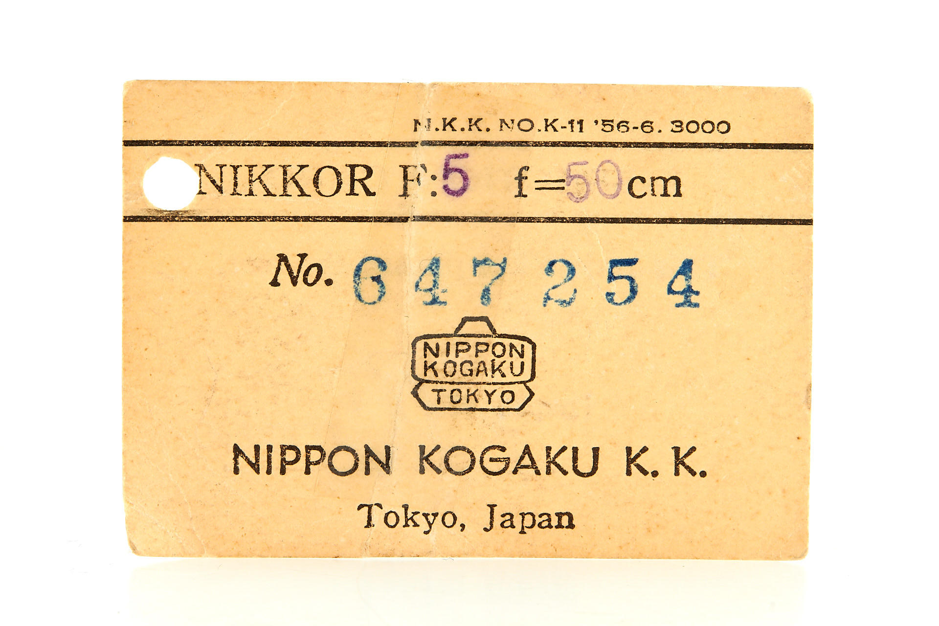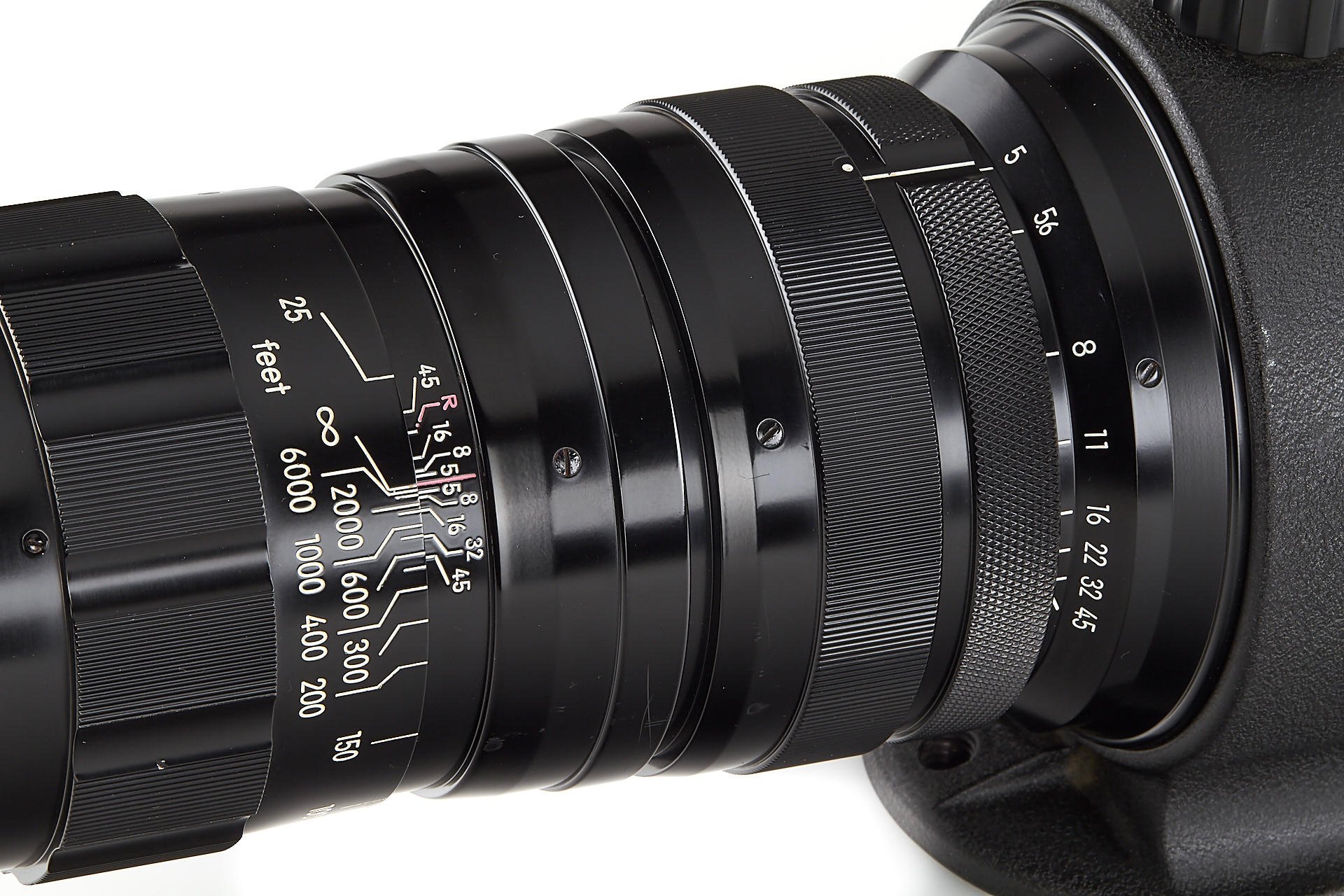 massive telephoto lens, made for use with reflex housing, one of the last made - production ceased with no.647285, total production in Nikon bayonet mount was 157 units only, in near mint condition, clean optics, metal hood and front cap, maker's wooden case (inspection slip, keys)