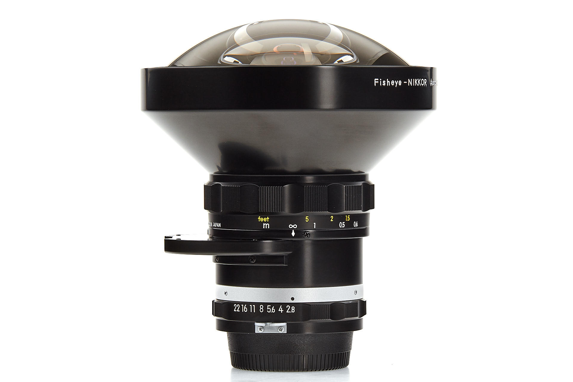 Fisheye-Nikkor in beautiful, almost mint condition, very good optics (only a few small specs inside), with both caps, CL-11 case (worn)