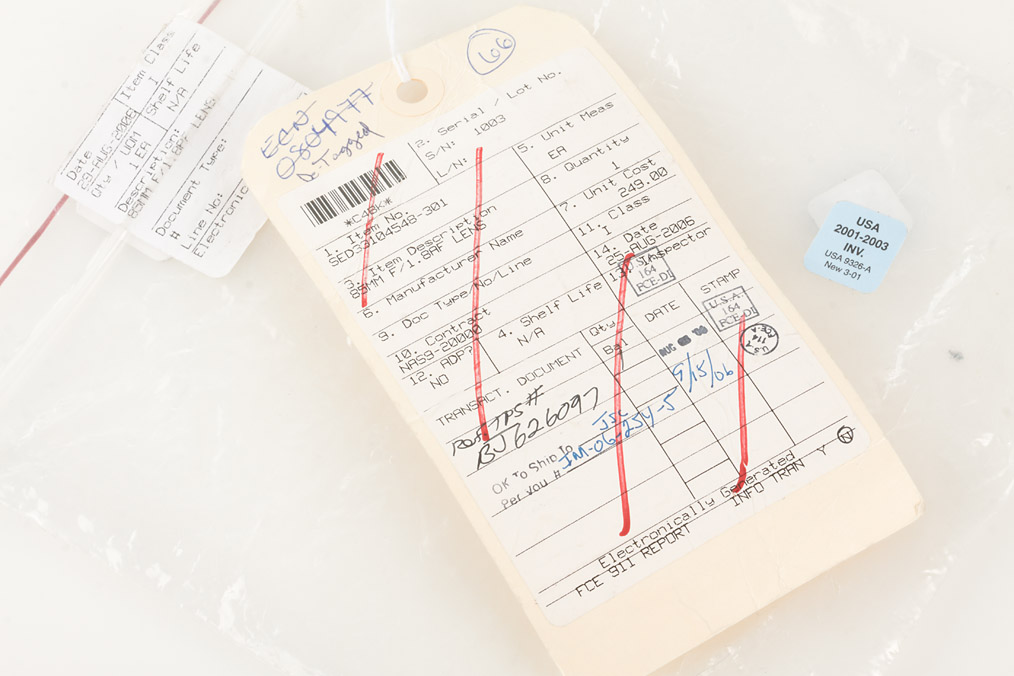 AF Nikkor in near mint condition, NASA numbers P/N SED33104548-301 S/N 1003 with inventory stickers and flight records, flew on STS-66 Space Shuttle Atlantis Mission on November 3rd 1994, STS-76 Space Shuttle Atlantis Mission on March 22nd 1996 and on STS-86 Space Shuttle Atlantis Mission on September 26th 1997, caps