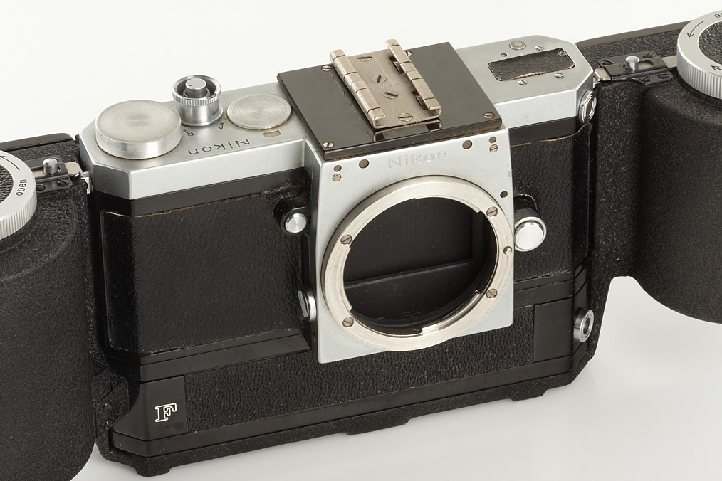 modified body (probably for panoramic use), no winding lever, no speed dial, no mirror, no rewind lever, no prism, no serial number, with F250 back no.105743