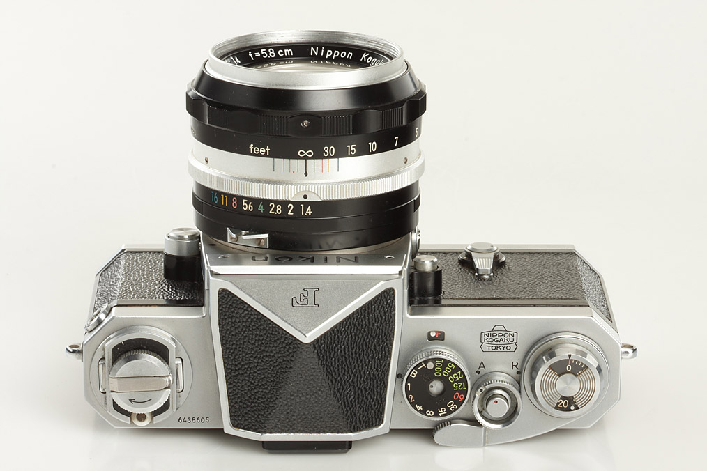 Tokyo body in mint condition with eyelevel finder, Nikkor-S Auto 1.4/5.8cm no.169400, cap, all papers, maker's box, outer box with matching number