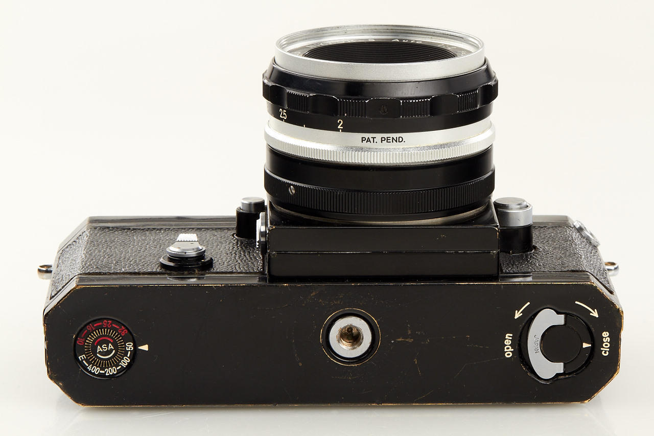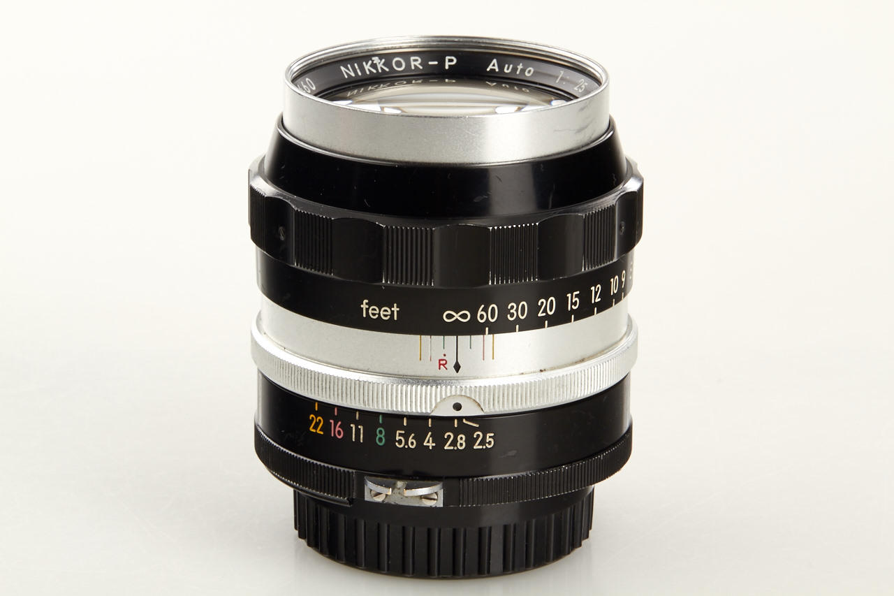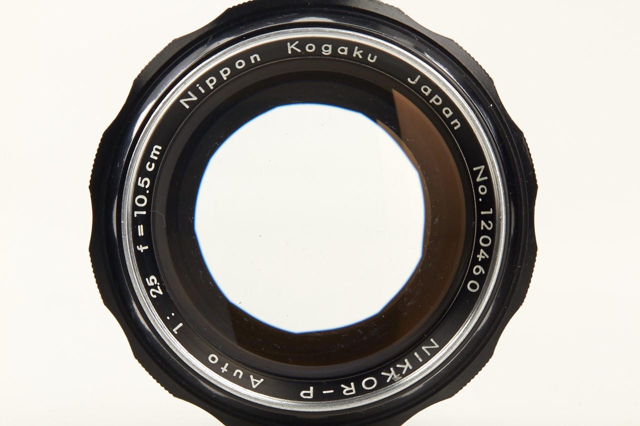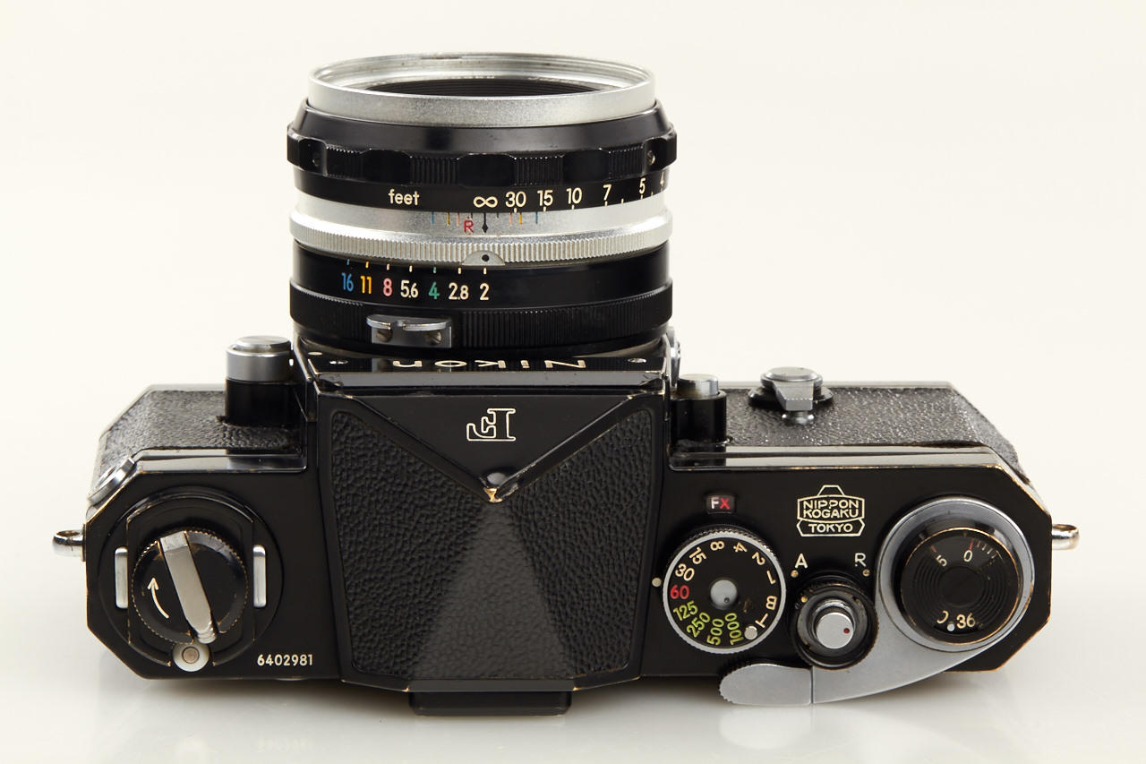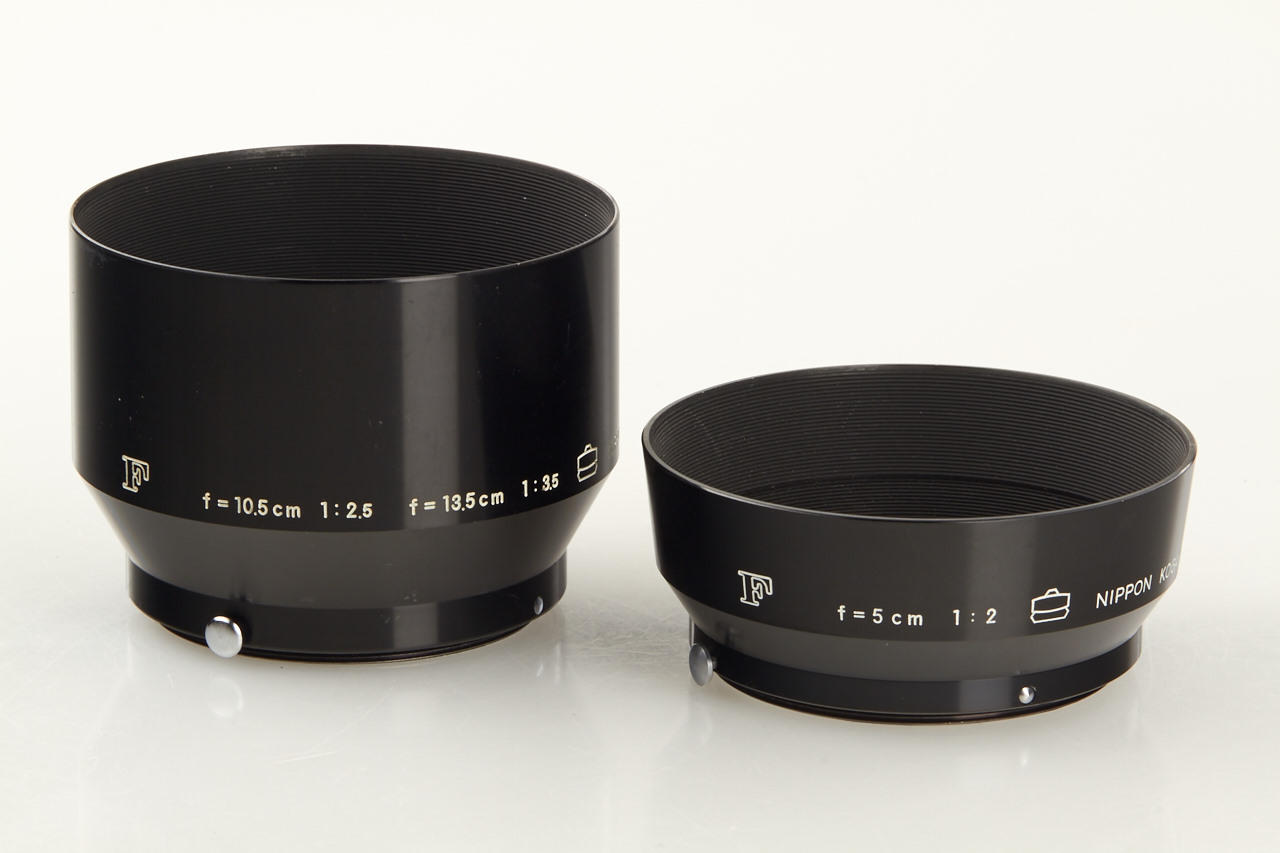 very early black paint body with all correct features in fully working order, eyelevel finder engraved 'NIPPON KOGAKU JAPAN', with 'Tick Mark' Nikkor-S 2/5cm no.522156 (clear lenses, some cleaning marks in front) with matching hood engraved 'NIPPON KOGAKU JAPAN' and NK - Logo, very early 'Tick Mark' Nikkor-P 2.5/10.5cm no.120460 in fine and fully original condition (cap, plastic keeper, matching hood), light meter Type 2, no.784609 in working (!) order, early Nikon F everready case in deep brown colour with light brown stitches (cond. B+), original early Nikon F maker's box showing the incorrect 'Full Automatic Reflex' inscription instead of 'Fully' in perfect condition - with both original caps for the lens and the matching body cap - all with 'NIPPON KOGAKU JAPAN' and NK - logo