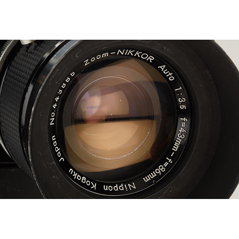 black Tokyo Nikon F no.6544176 engraved 'U.S. NAVY' with prism finder, raised rewind knob, back with all U.S. NAVY markings, modified Tokyo F-36 motor, hand grip with electric release, matching Zoom-Nikkor Auto 3.5/43-86mm no.443885 engraved 'U.S. NAVY'