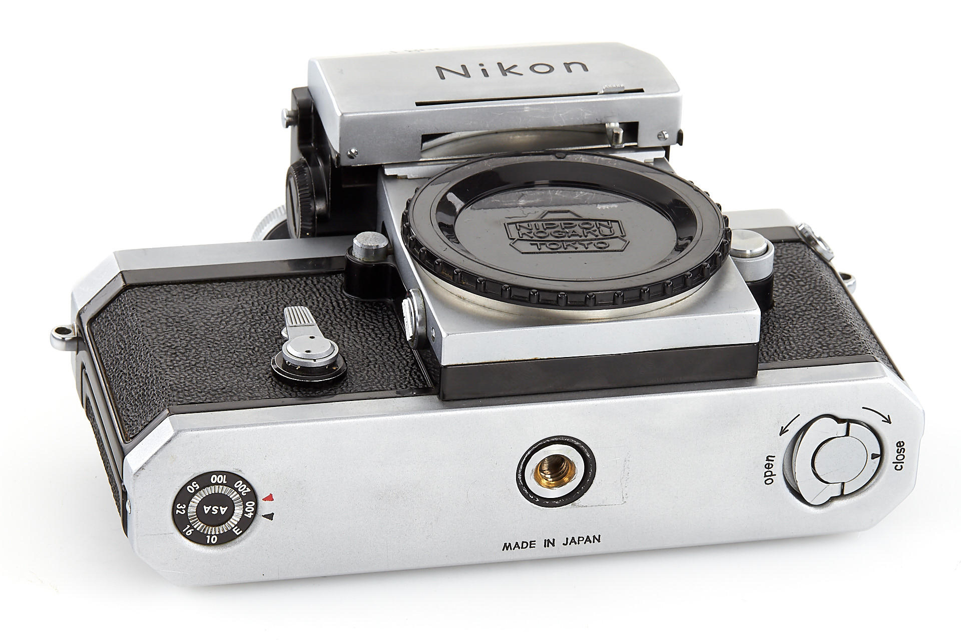 rare '66' serial number camera in dull chrome, with a red dot in front of the serial number. The '66' sequence of numbers was initially assigned to the Nikon S3M, the half-frame RF camera, from which only 200 or so units were ever made. The '66' range number sequence has been eventually assigned to both, the S3M and the Nikon F back at that time, only 2826 cameras have been made from the '66' sequence of numbers, in fully working order, front cap
