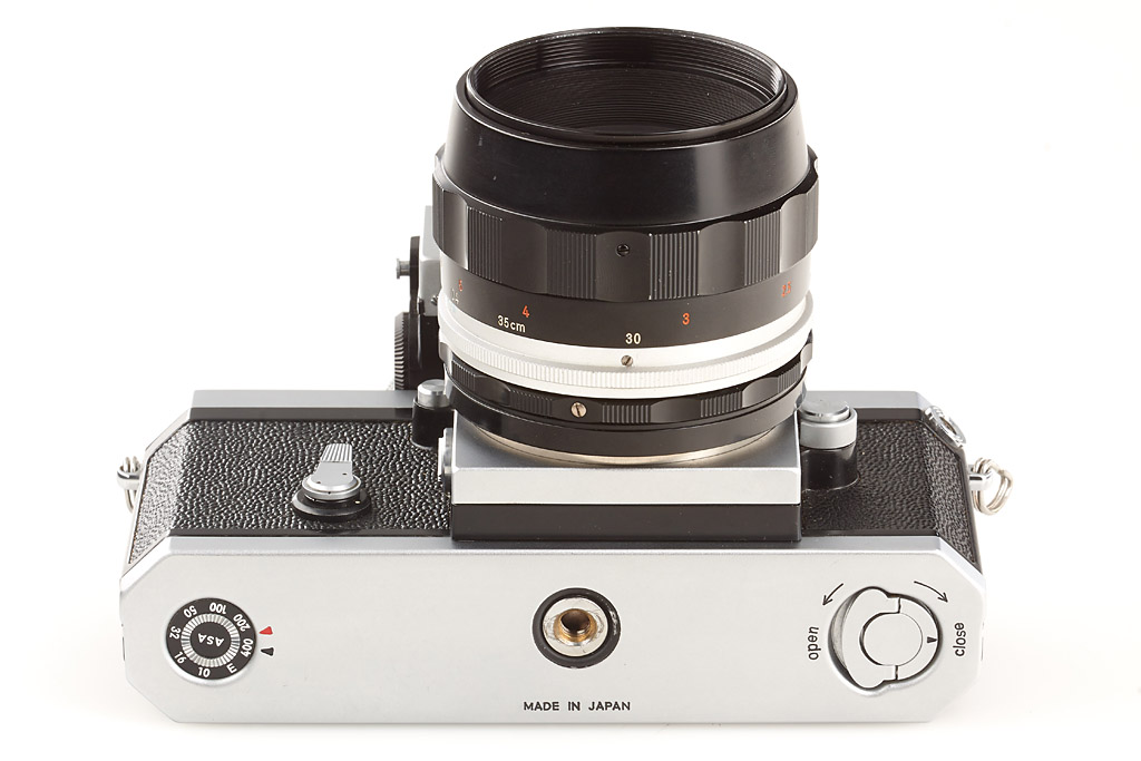 Tokyo body in near mint condition and good working order with Photomic T prism finder no.803791 and Micro-Nikkor 3.5/55mm no.242291 (clean lenses, cap), instructions