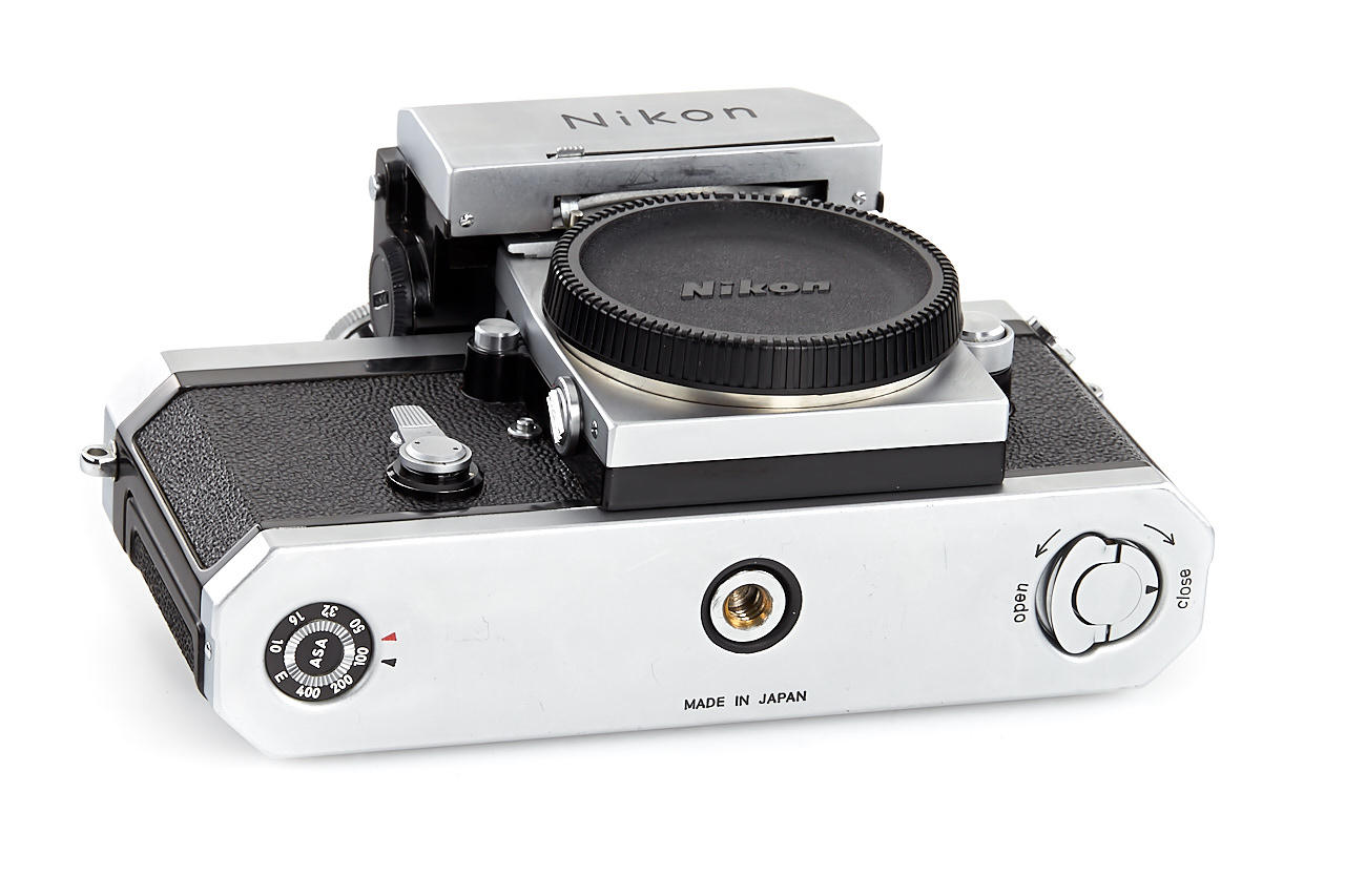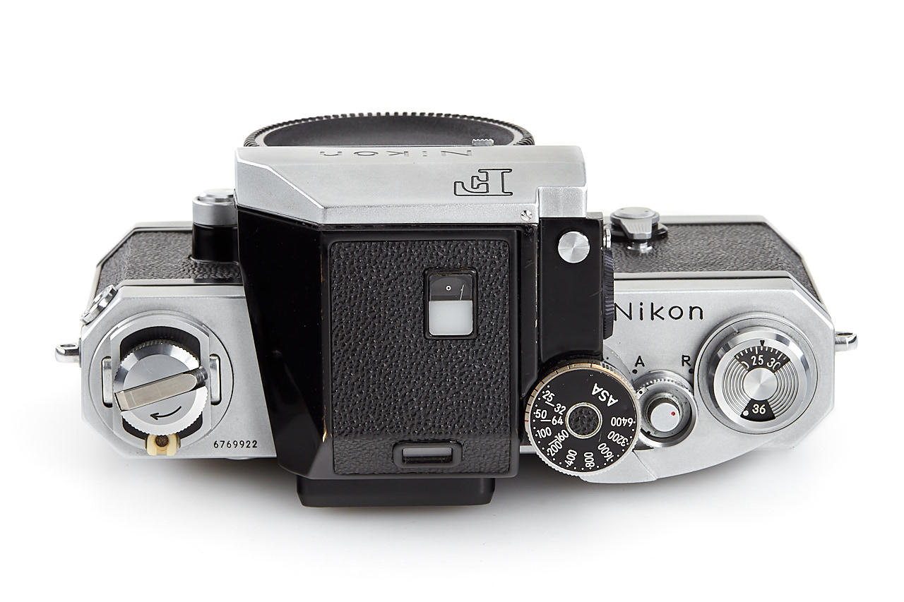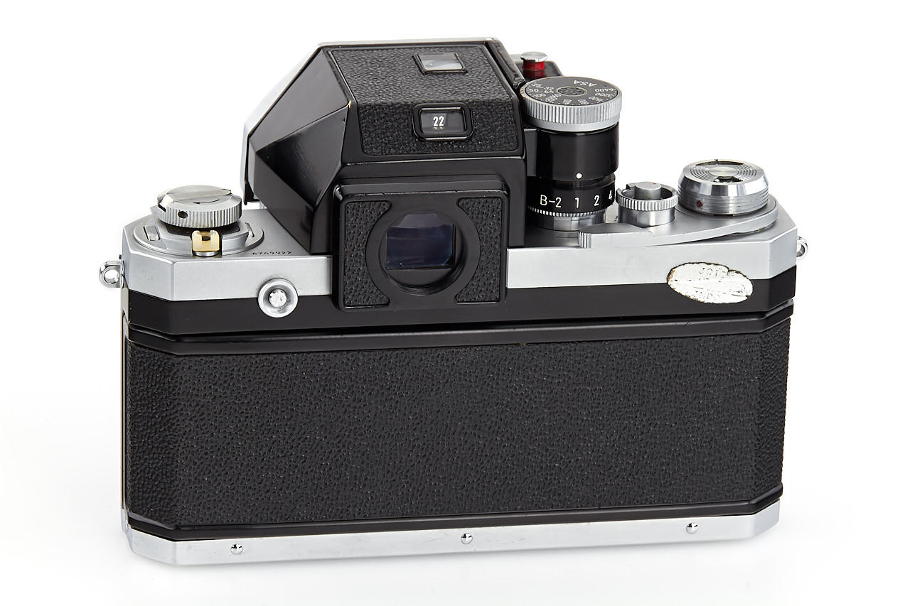 very rare and sought-after version of the Nikon F with mirror-up button, back at that time distributed by Questar, but according to Uli Koch, 'Nikon F - The Camera', p. 126, most likely factory modified, the modification has been found on bodies between no.6486777 and 7439745, in excellent condition, with Photomic T finder no.831121 (clean optics, cond. B+), guarantee card, packing list from Questar, body cap