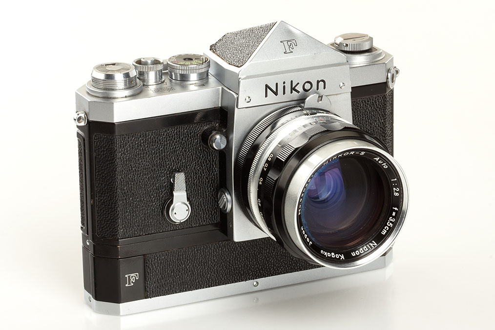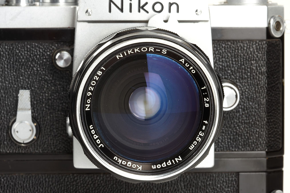 two early Nikon F bodies (nos.6404086 & 6405852) in good working order with eyelevel finders, with very early F-36 Motor Drives (from the first hundert motor drives produced) with consecutive numbers (no.97066 and no.97067), with two very rare and early Tick-Mark Nikkor-S Auto 2.8/3.5cm with consecutive numbers (no.920281 and no.920282), caps, including two Nikkor-S Auto 2/5cm (no.529561, caps, and no.533690, keeper) - a unique set !