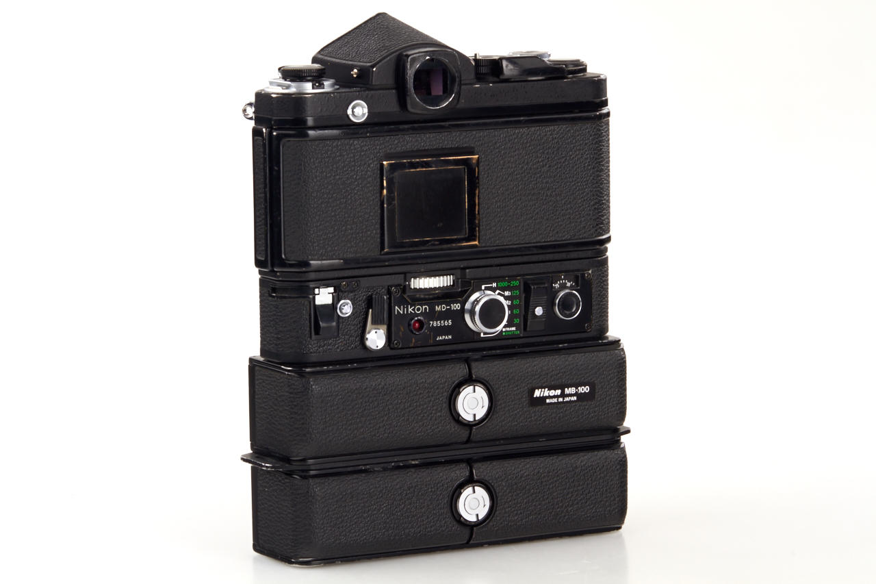 Special and rare 'High Speed' camera for 10 fps., model II in very fine and perfect working condition with High Speed Motor Drive Unit MD-100 no.785565, MB-100, MH-1 quick charger with four MN-1 battery units