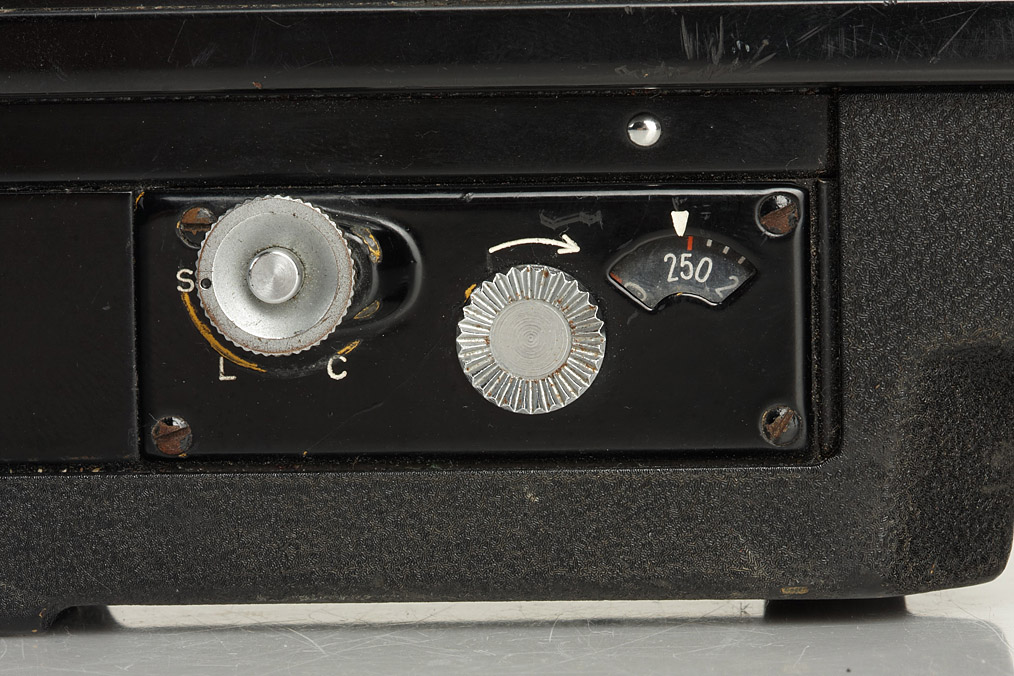 3rd type 250 back with spool, next to the speed selector engraved: PART OF USN 019180, inside written numbers: M 100152 (matching motor number) and B 6576198 (camera) - made for U.S. NAVY
