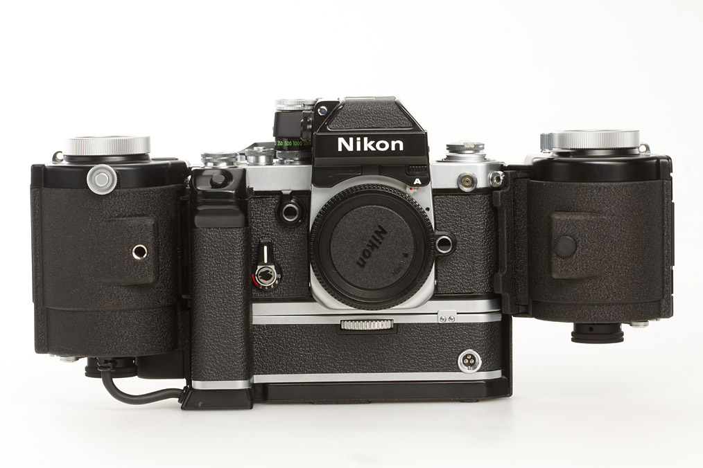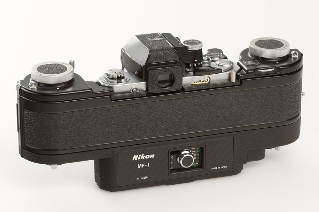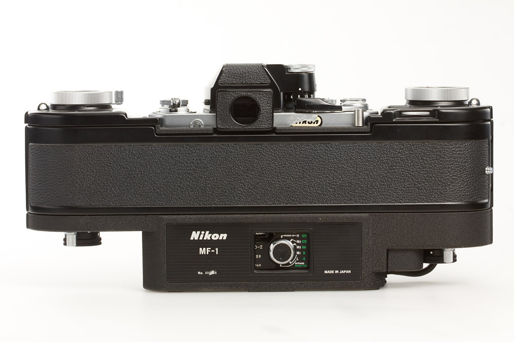 in fine cosmetically condition (shutter needs service) with MD-2 motor drive no.415559 and MF-1 250 exposure back, cap