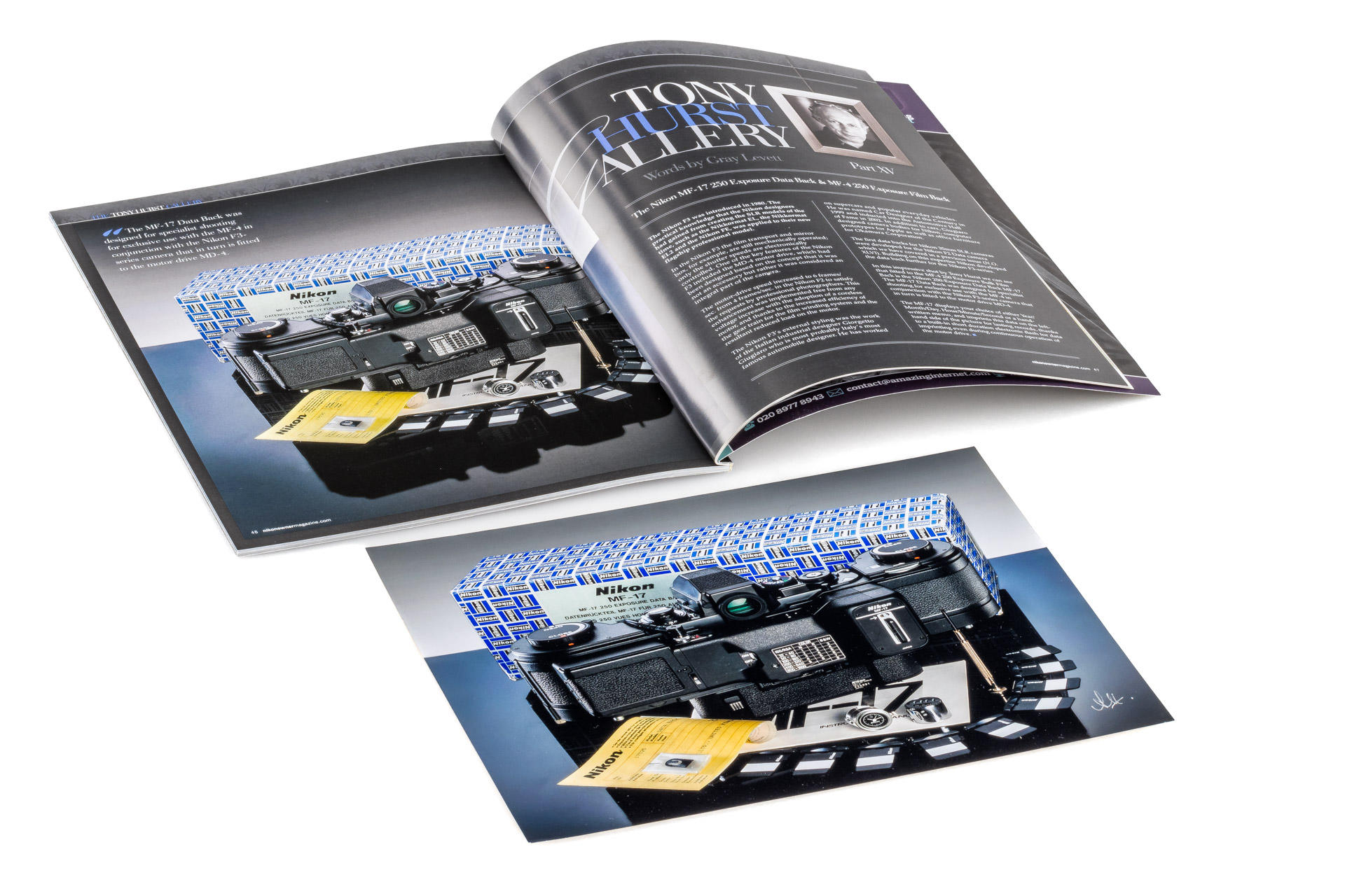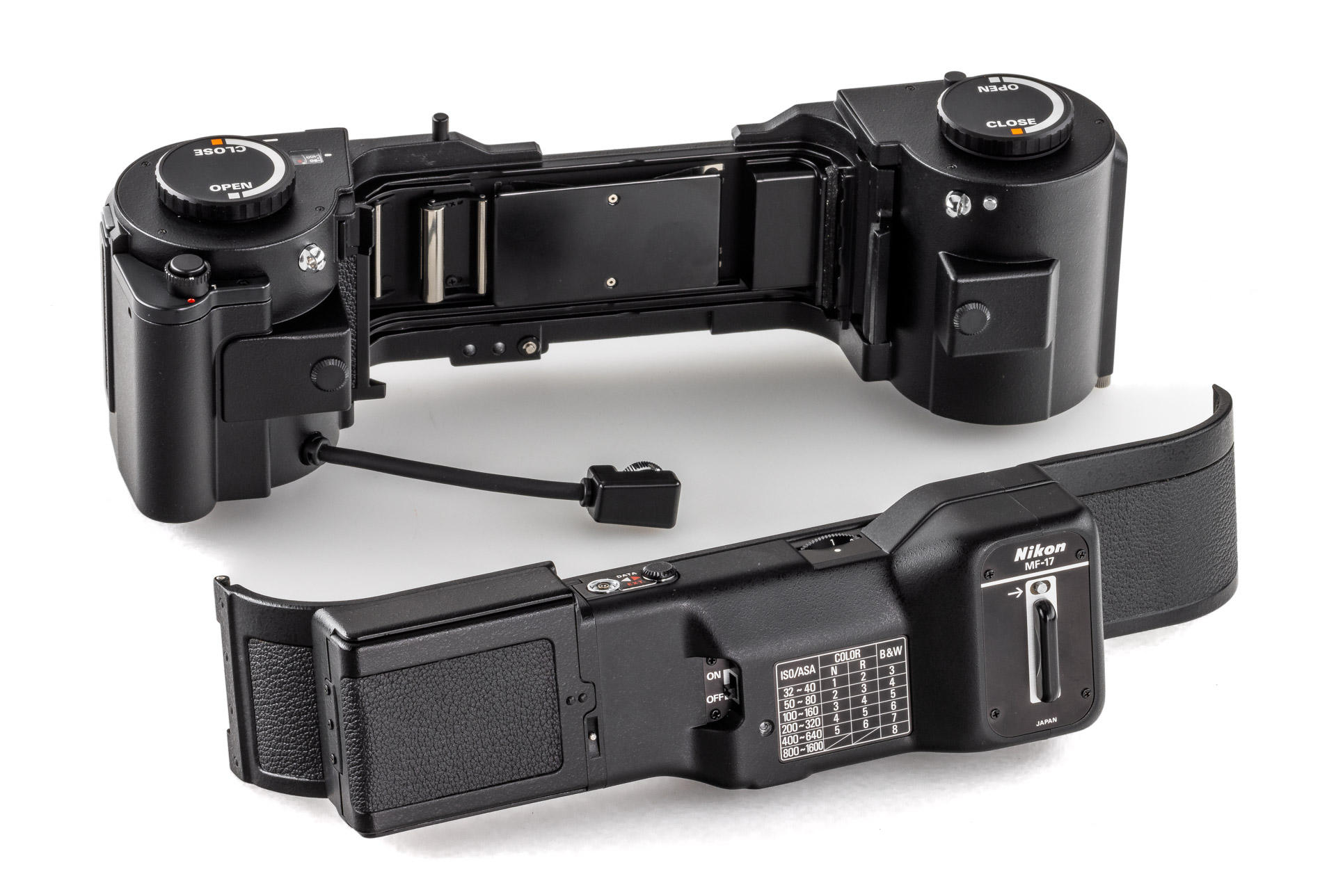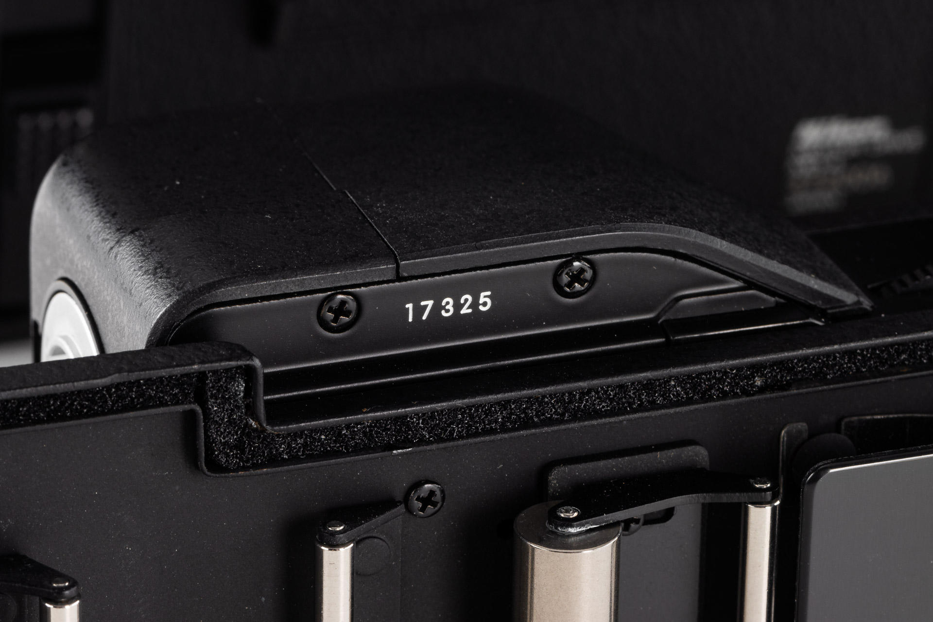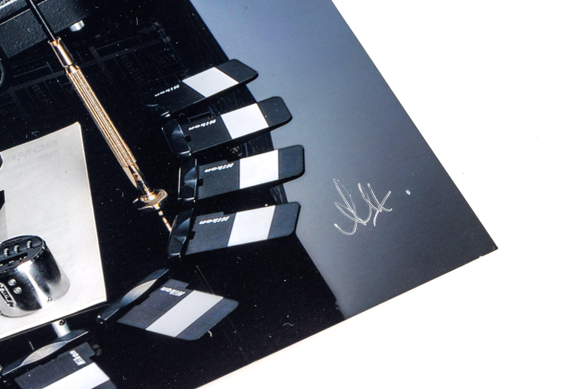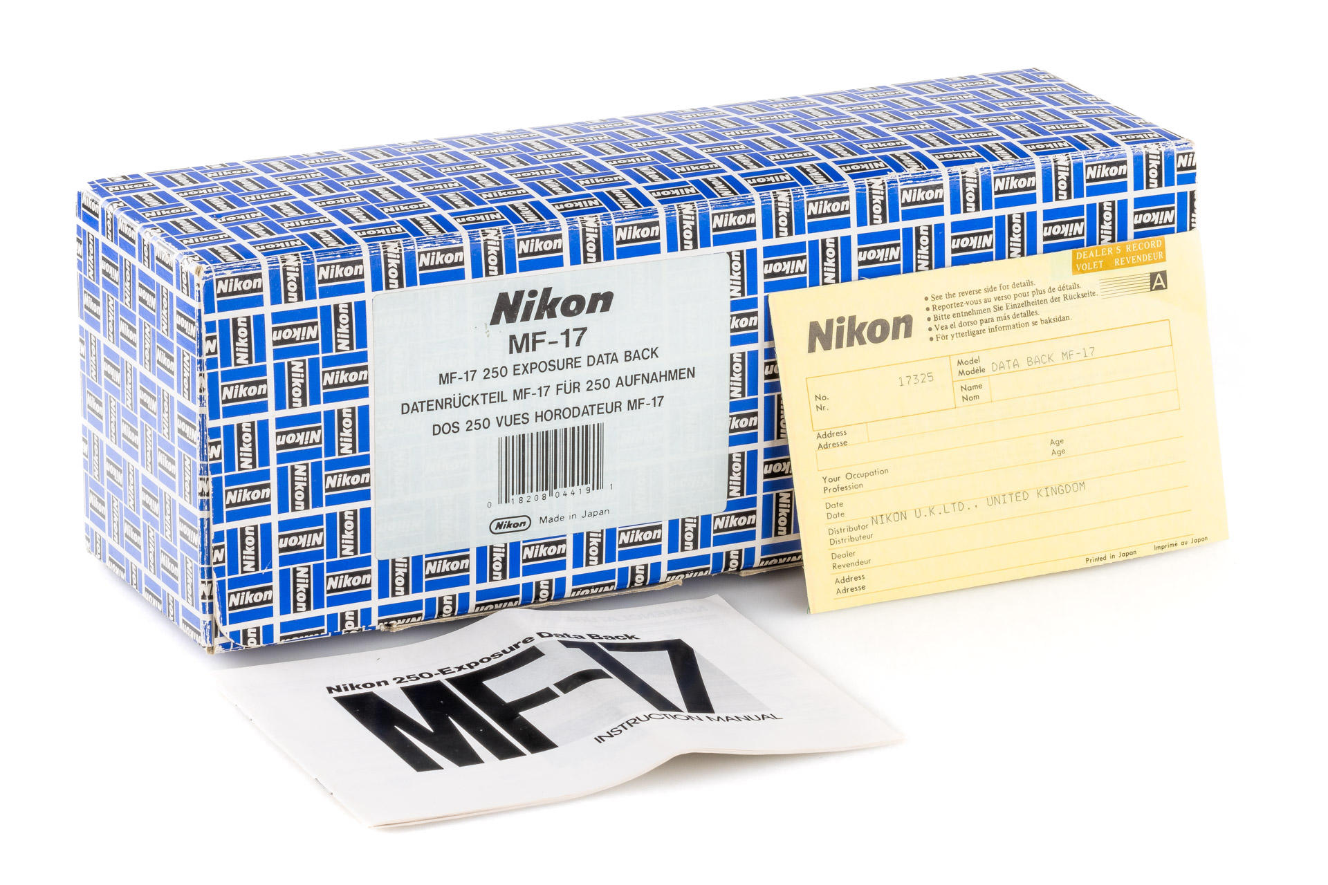 extremely rare 250 exposure data back which allows the user to imprint data on the film (Year/ Month/Day, Hour/Minute/Second or even handwritten memo, in mint condition, complete with all accessories, warranty card and maker's box, this exact MF-17 is shown in the "Nikon Owner Magazine" in 2016, comes with signed print of Tony Hurst, together with Nikon F3 HP no.1946988 in mint condition and working order, with Motor Drive MD-4 no.372006, 250 exposure magazine back MF-4 no.103851 (complete with original maker's box, papers and warranty card), 2x MZ-1 film cassettes (original maker's box)