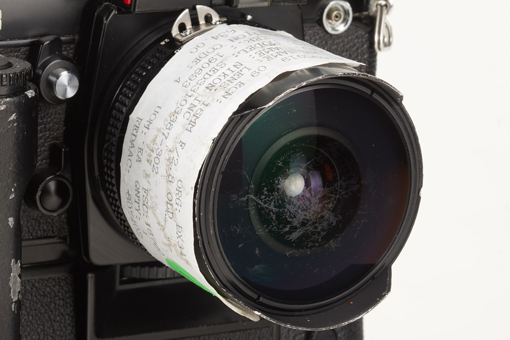 rare NASA F3 outfit: body with NASA stickers, engraved and hand-engraved numbers, MF-18 data back with NASA Property and inventory numbers, MD-4 motor-drive no.283259 and 5 matching lenses and accessories: Fisheye-Nikkor 2.8/16mm no.190693 with NASA inventory sticker, heavy marks on front lens), Nikkor 1.4/35mm no.401114 with NASA Property and inventory sticker and hand engraved number 717621 (cap), Nikkor 2/28mm no.594848 with NASA inventory sticker (cap), Nikkor ED 2.8/180mm no.409316 with NASA Property and inventory sticker and hand engraved number 728346 (cap), Zoom-Nikkor 3.5/35-70mm no.948241 with NASA Property and inventory sticker and hand engraved number 040998 (cap), cable release with NASA Property and inventory sticker marked: P/N SED33102473-301 S/N 5010, special NASA SB-17 TTL flash with inventory sticker and NASA numbers and two battery cases, filter set for Fisheye-Nikkor in black case with NASA number SED33103387-301