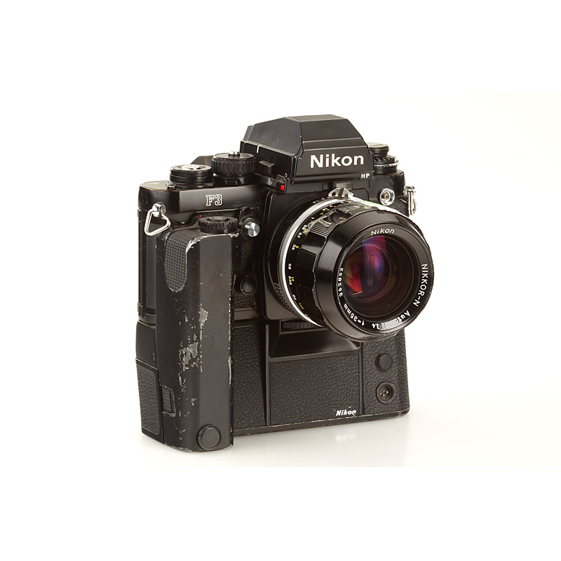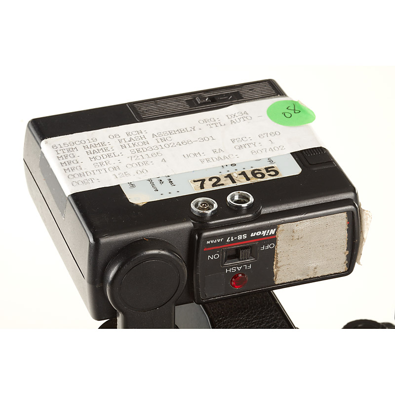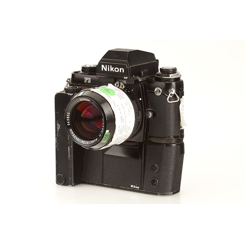 rare NASA F3 outfit: body with NASA sticker and hand-engraved number, back door with NASA stickers, MD-4 motor-drive no.210751 and 4 matching lenses and accessories: Nikkor 1.4/35mm no.362852 with NASA inventory sticker and hand engraved number 781517 (cap), Nikkor 2/28mm no.594053 with NASA inventory sticker (cap), Zoom-Nikkor 3.5/35-70mm no.971669 with NASA Property and inventory sticker and hand engraved number 728934 (cap), Zoom-Nikkor 4/80-200mm no.294869 with NASA Property and inventory sticker and hand engraved number 728350 (cap), SB-17 TTL flash with inventory stickers and three battery cases, cable release S/N 5009 with flight records
