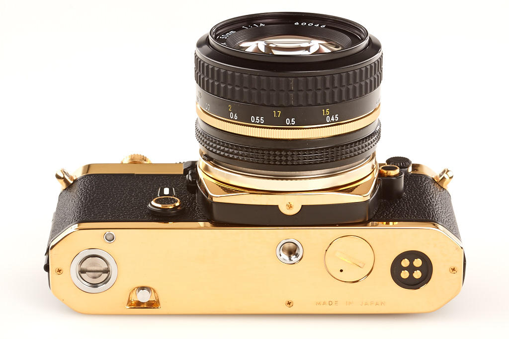 the gold plated Nikon FM was not sold to the public - only approx. 300 cameras were made for the 60th anniversary of Nikon company, with AI Nikkor 1.4/50mm with special number 60046