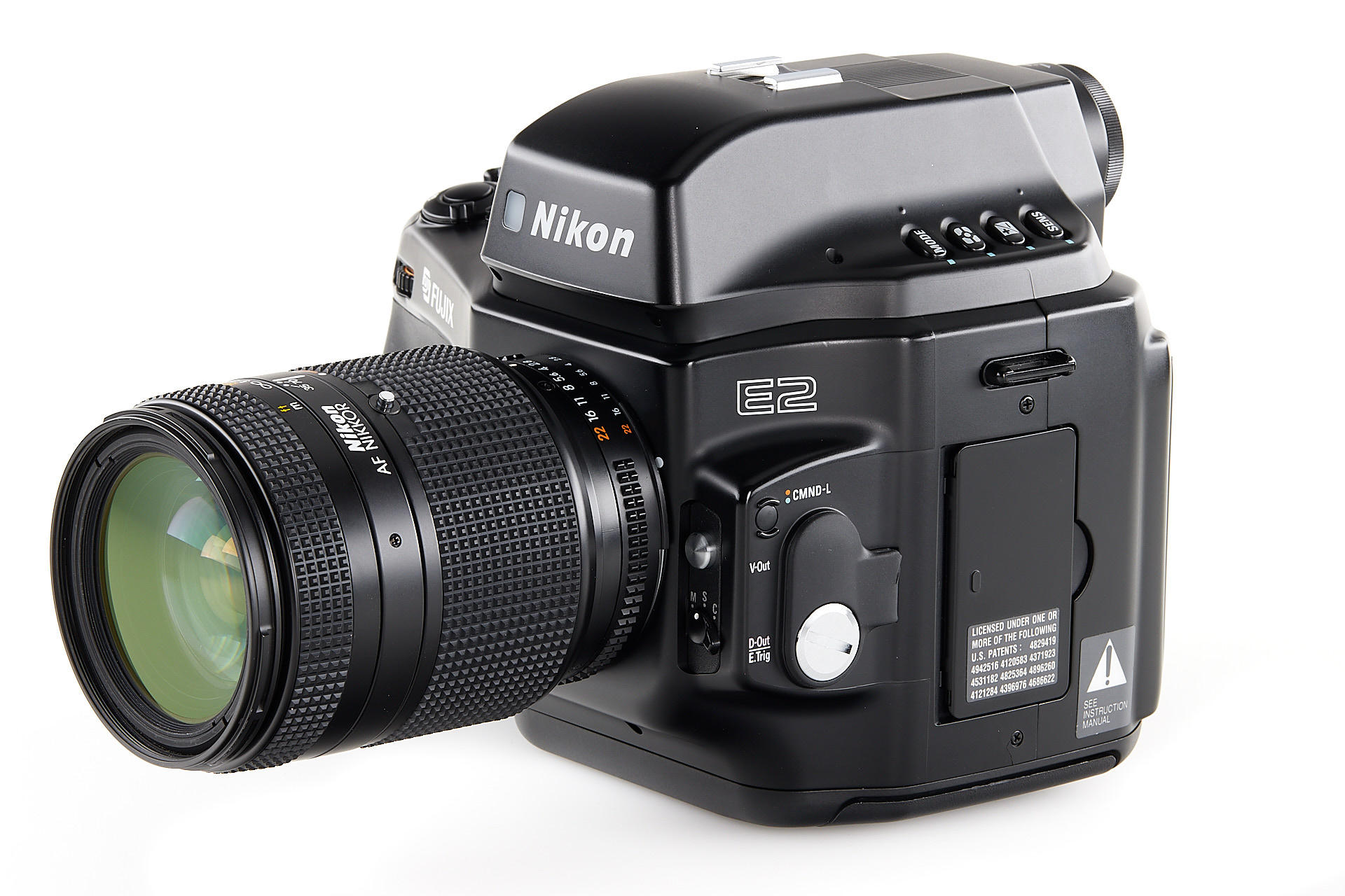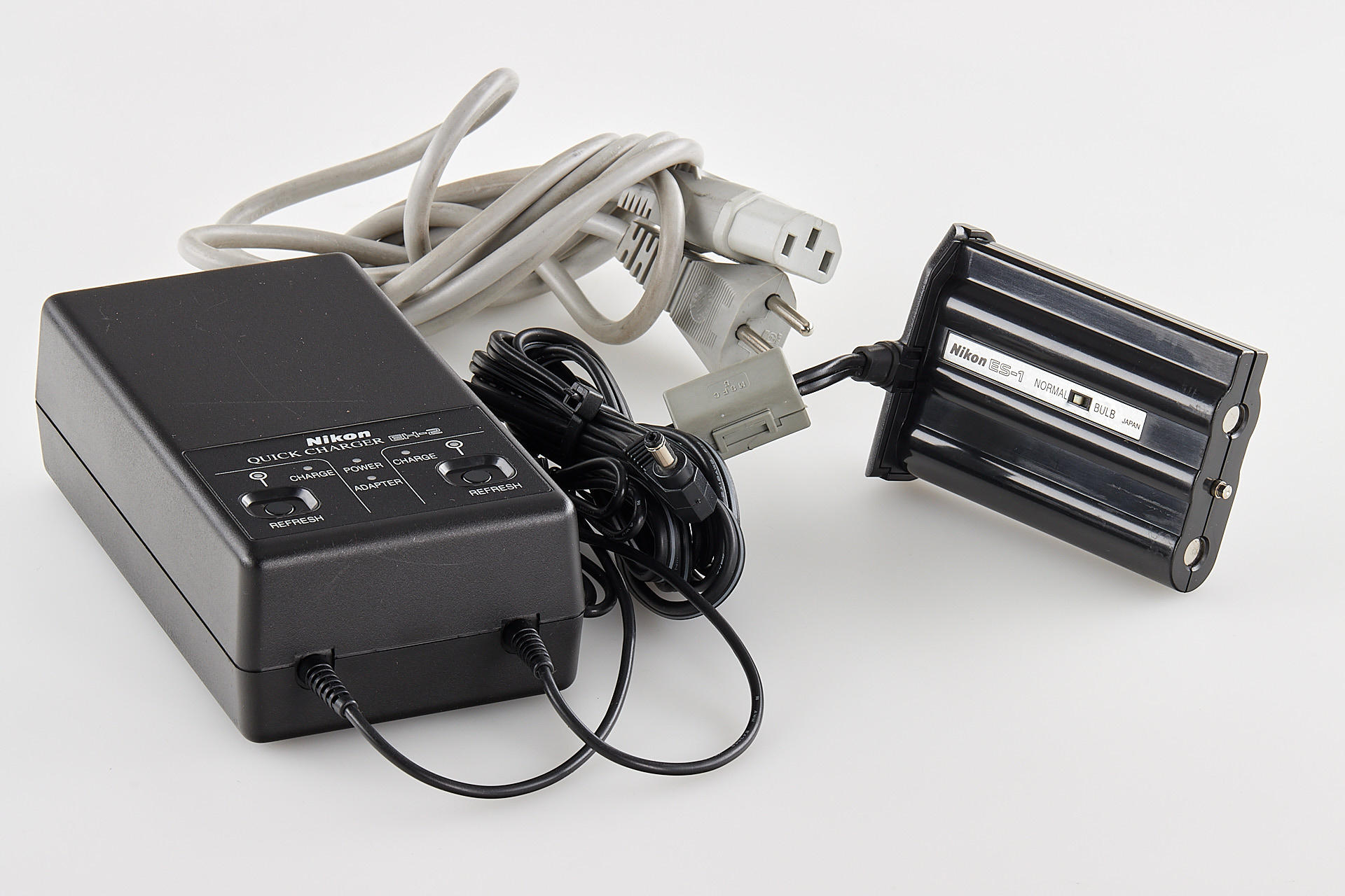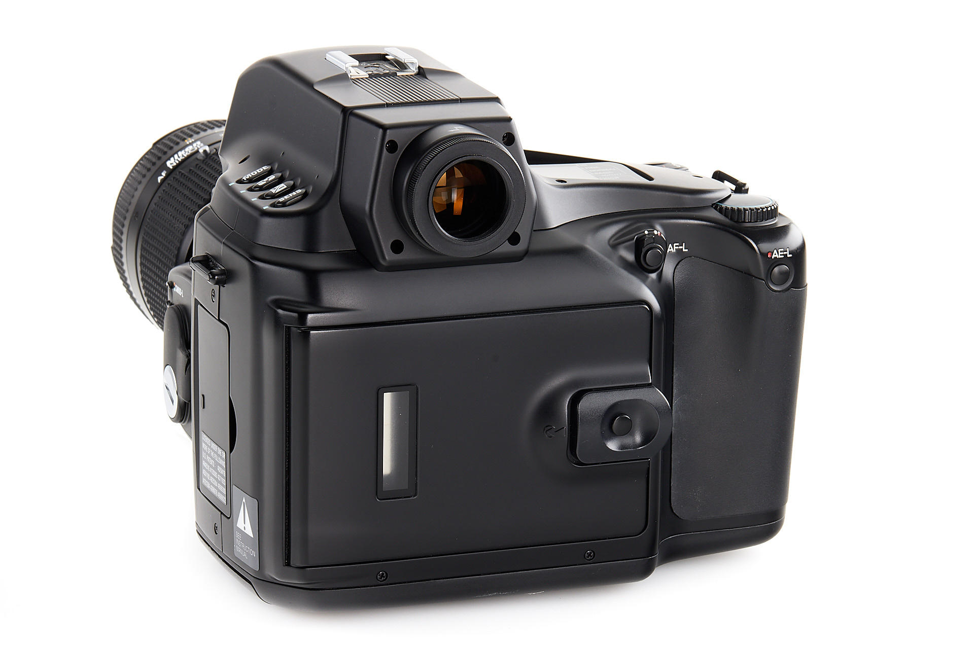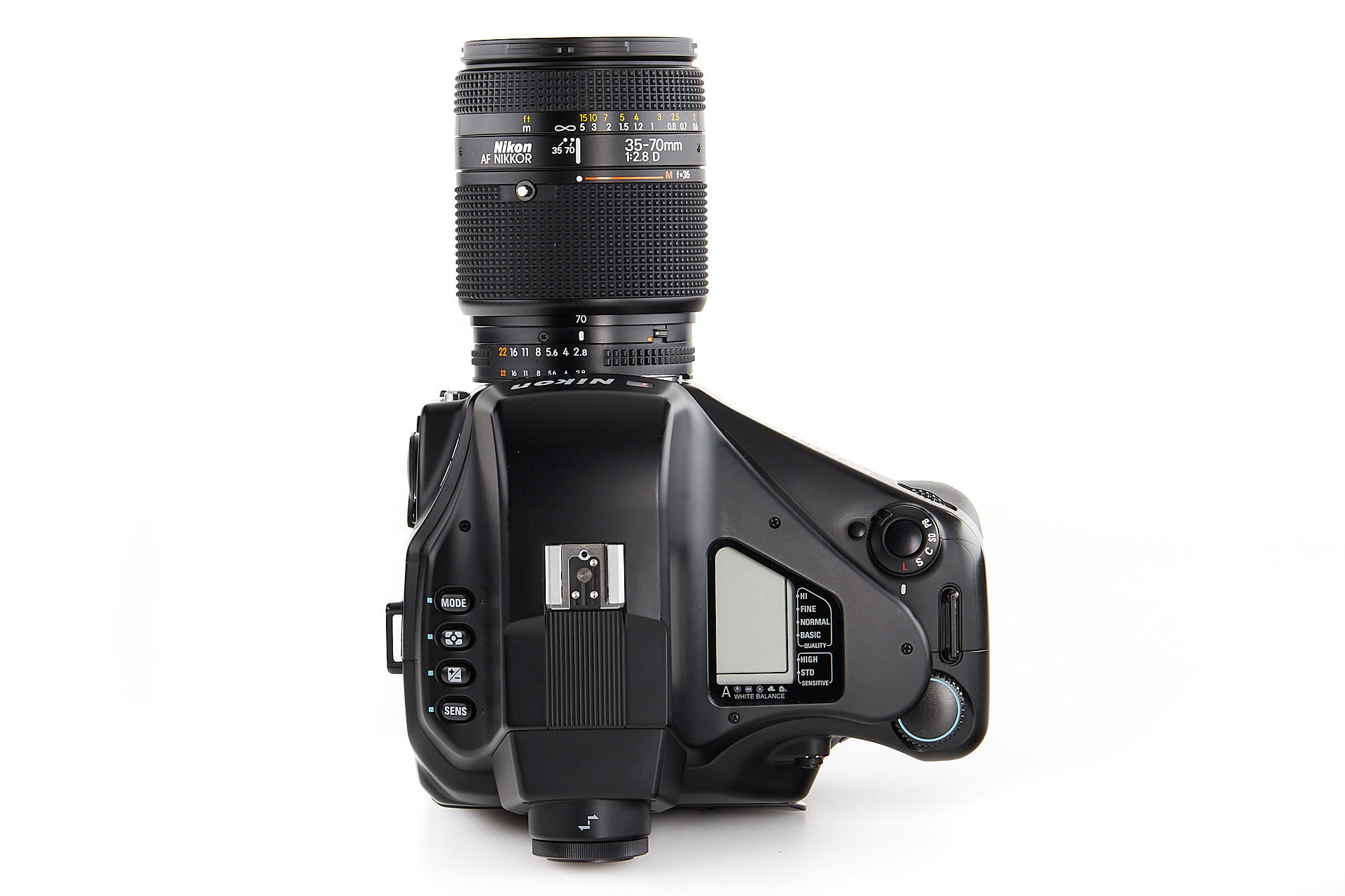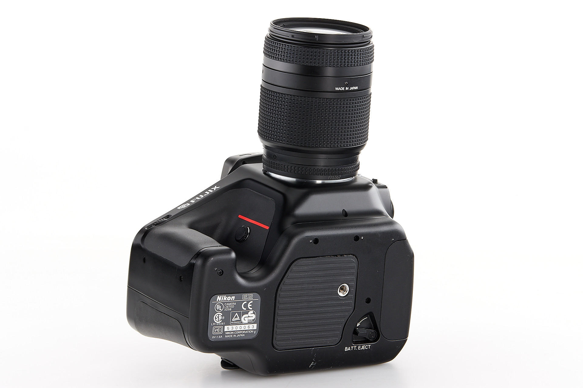 Very rare one of the first DSLR of the history, in mint condition, based on an F4 with a 2/3 inch CCD sensor with 1.3 megapixels, it uses a unique optical system that enables the small sensor to capture the 35mm field of view without crop factor and allowing a gain of light. The images are stored on PCMCIA memory cards. Together with body cap, battery, charger, ac adapter, ac cable (for Switzerland) and Zoom-Nikkor AF 2.8/35-70mm D no.776367 (caps, papers, maker's box)