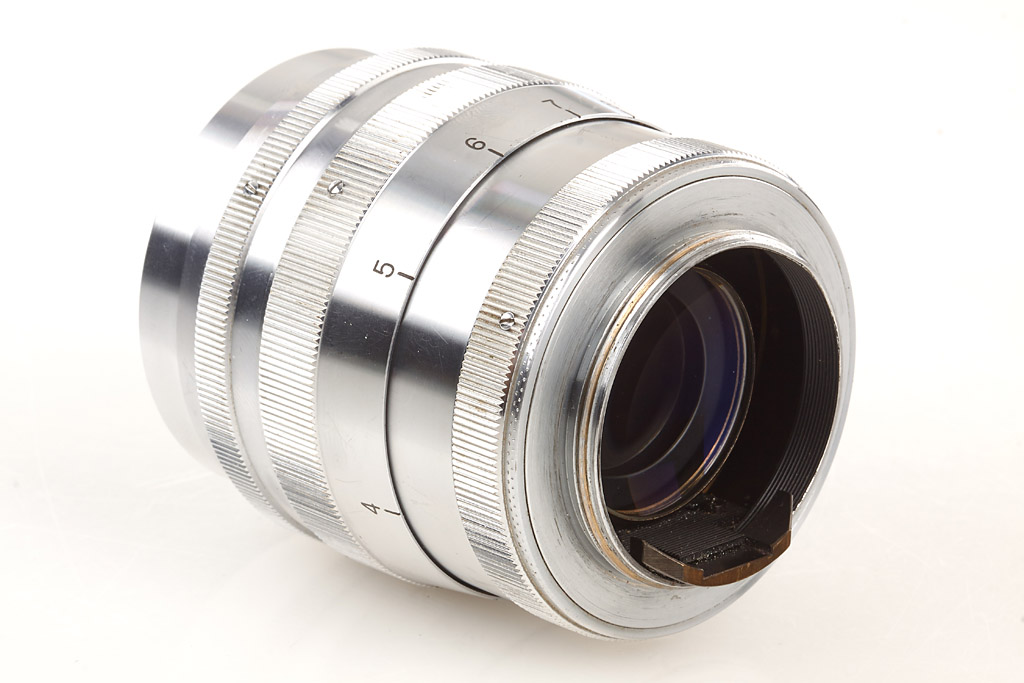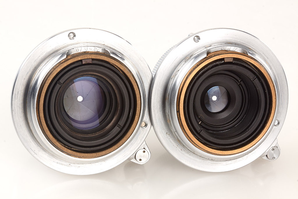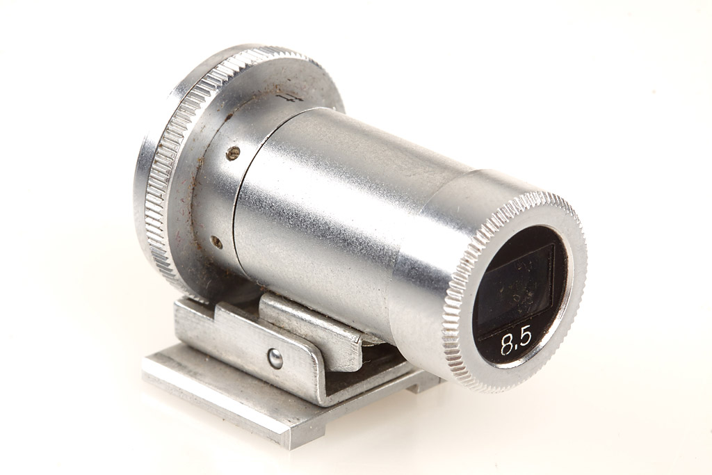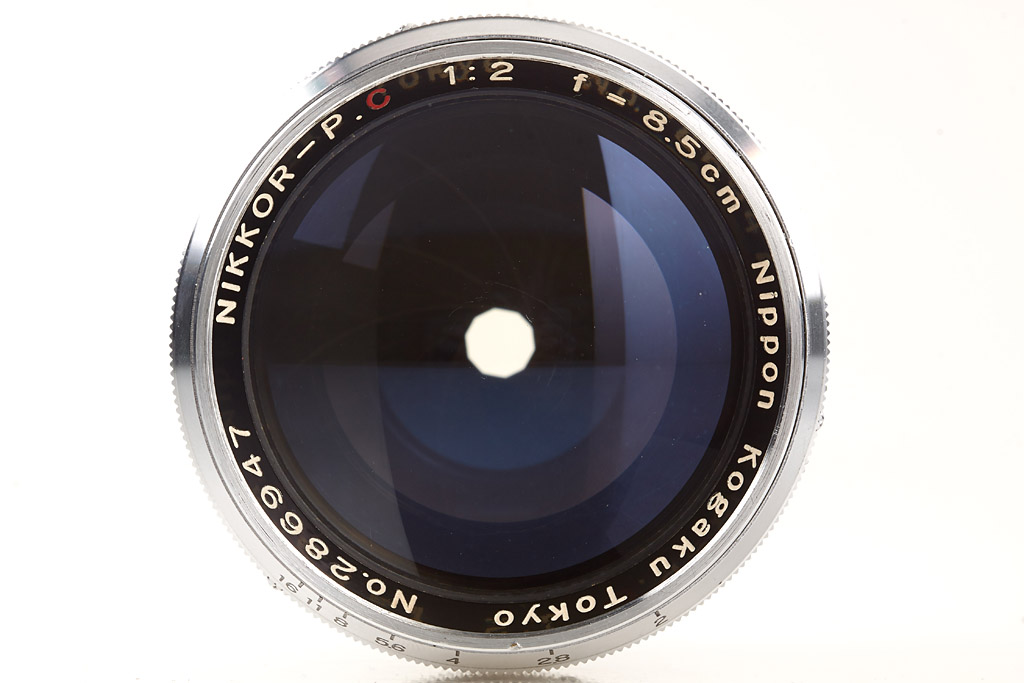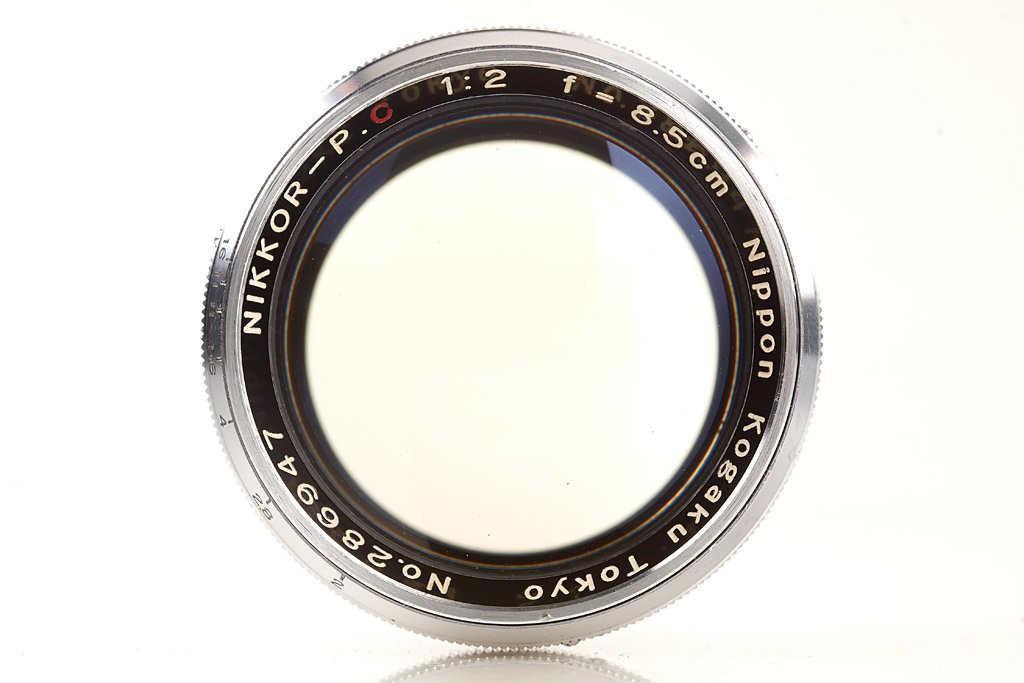 three M39 RF coupled lenses in good condition, (1) mint hrome W-Nikkor-C 2.5/3.5cm no.255941 (clean lenses, caps, keeper), (2) mint chrome W-Nikkor-C 3.5/3.5cm no.438126 (clean lenses, caps), (3) chrome Tokyo Nikkor-P.C 2/8.5cm no.286947 (cleaning marks, hood, caps, keeper) with matching finder (in keeper) (3)