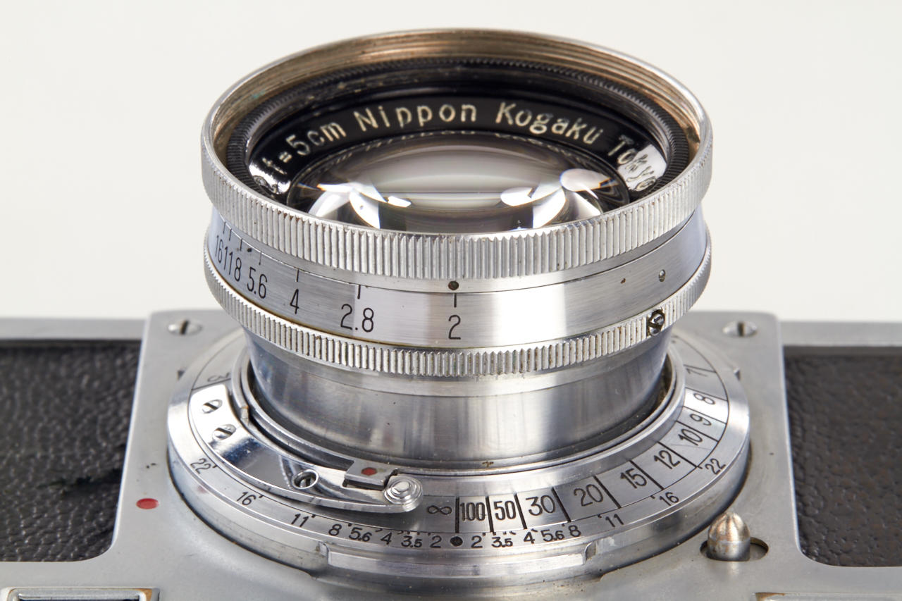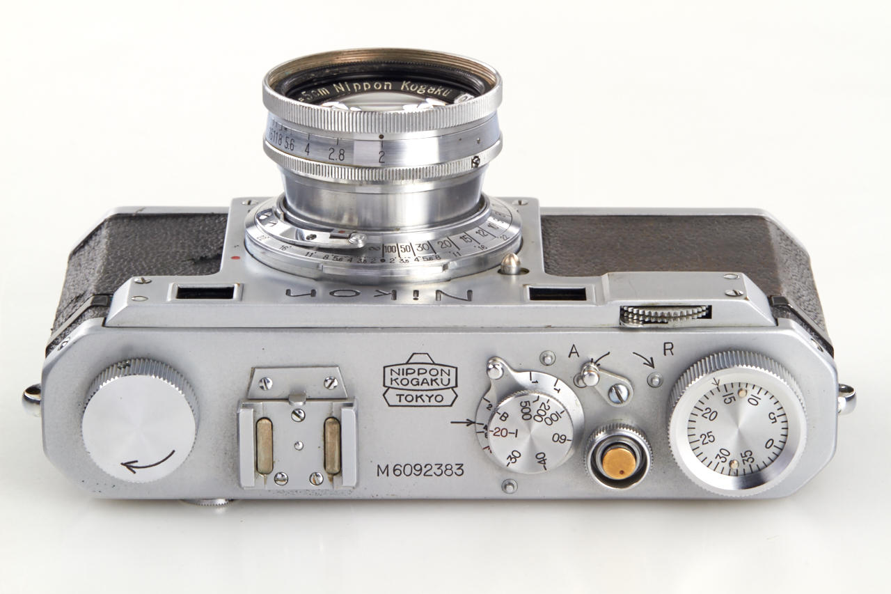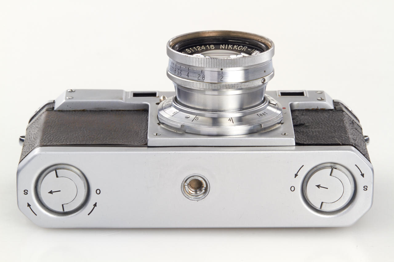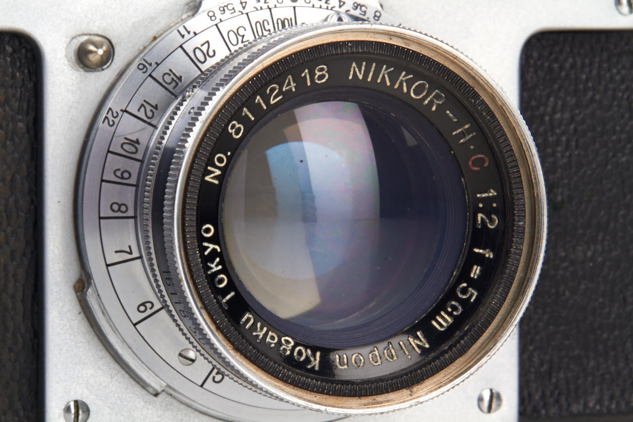 24x34mm, late unsynchronised, completely original Nikon M in perfect working order, 'MADE IN OCCUPIED JAPAN' marked on back door, matching serial number inside back, with a very rare 'Hybrid' Nikkor-H no.8112418 in perfect condition (The Complete Nikon Rangefinder System by Rotoloni shows lens no.8112411 - page 220/221), with the original brown everready case