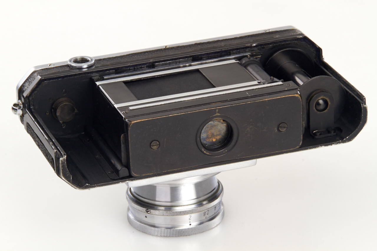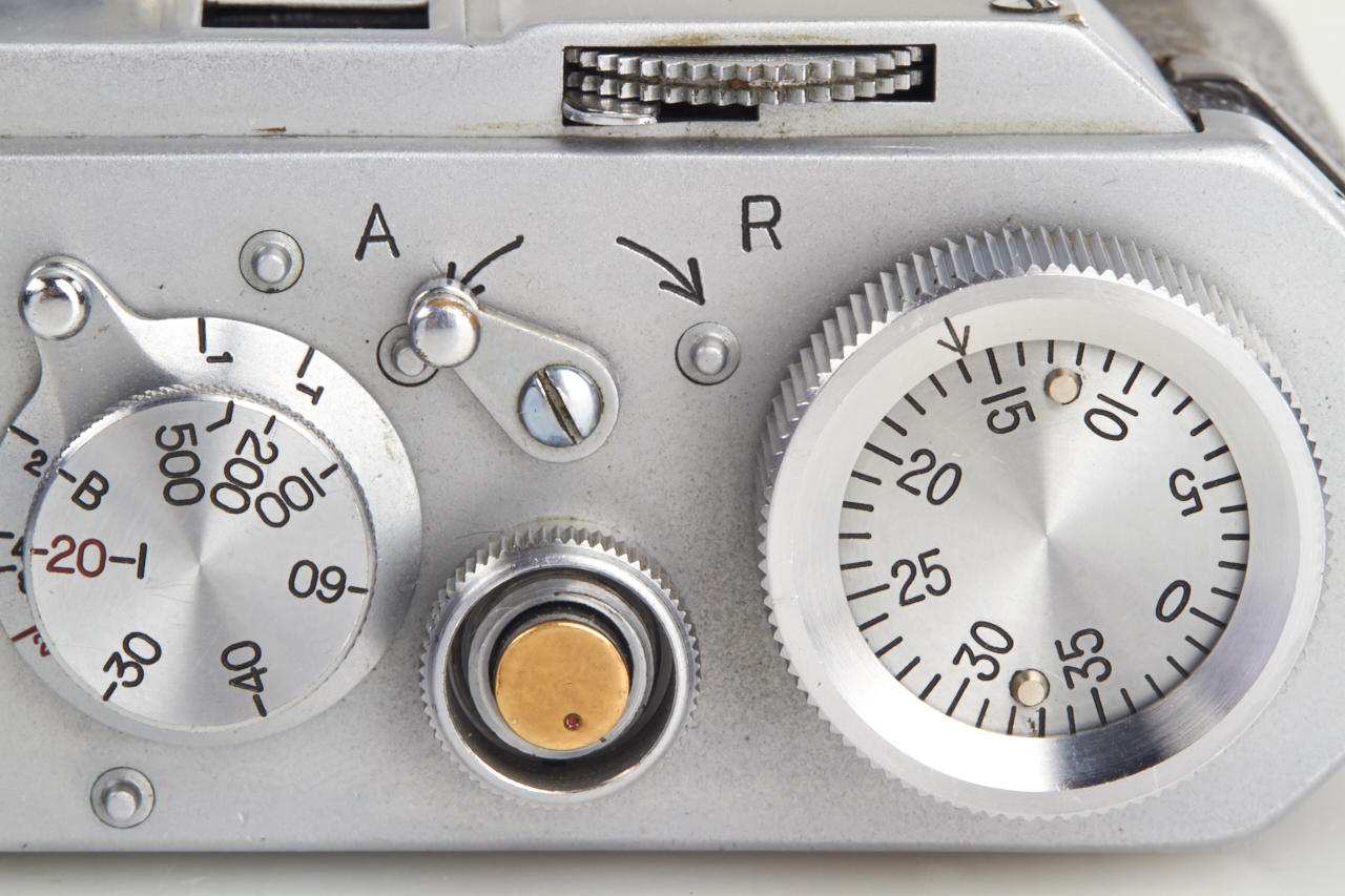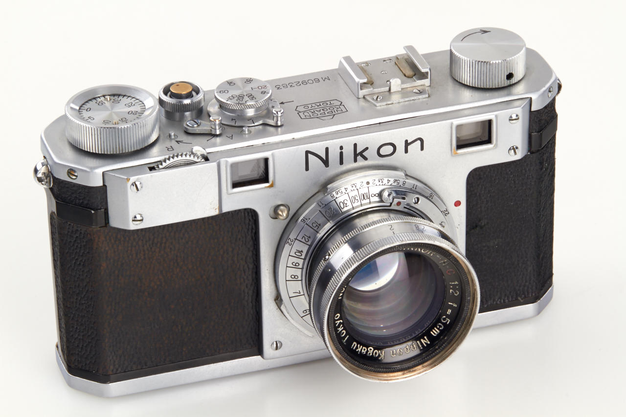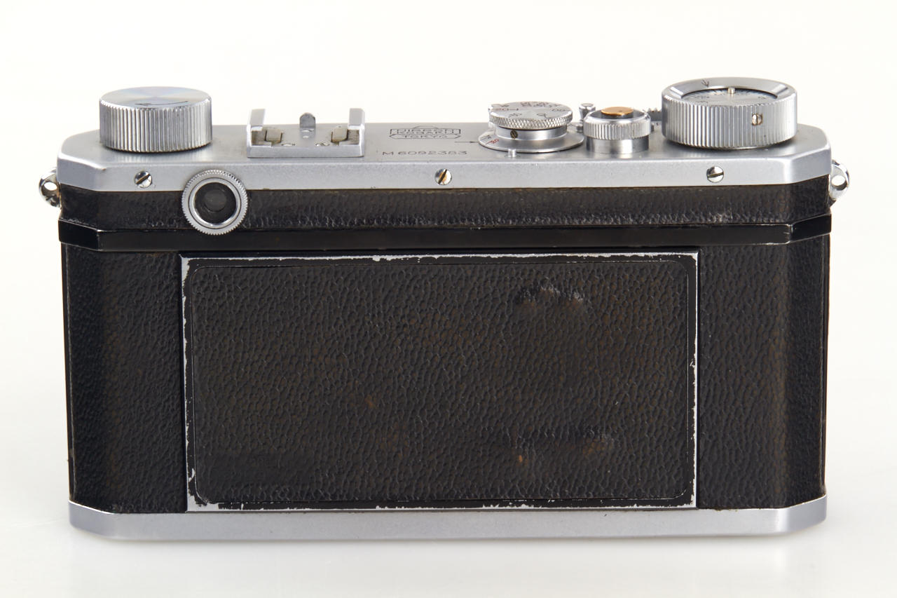 24x34mm, late unsynchronised, completely original Nikon M in perfect working order, 'MADE IN OCCUPIED JAPAN' marked on back door, matching serial number inside back, with a very rare 'Hybrid' Nikkor-H no.8112418 in perfect condition (The Complete Nikon Rangefinder System by Rotoloni shows lens no.8112411 - page 220/221), with the original brown everready case
