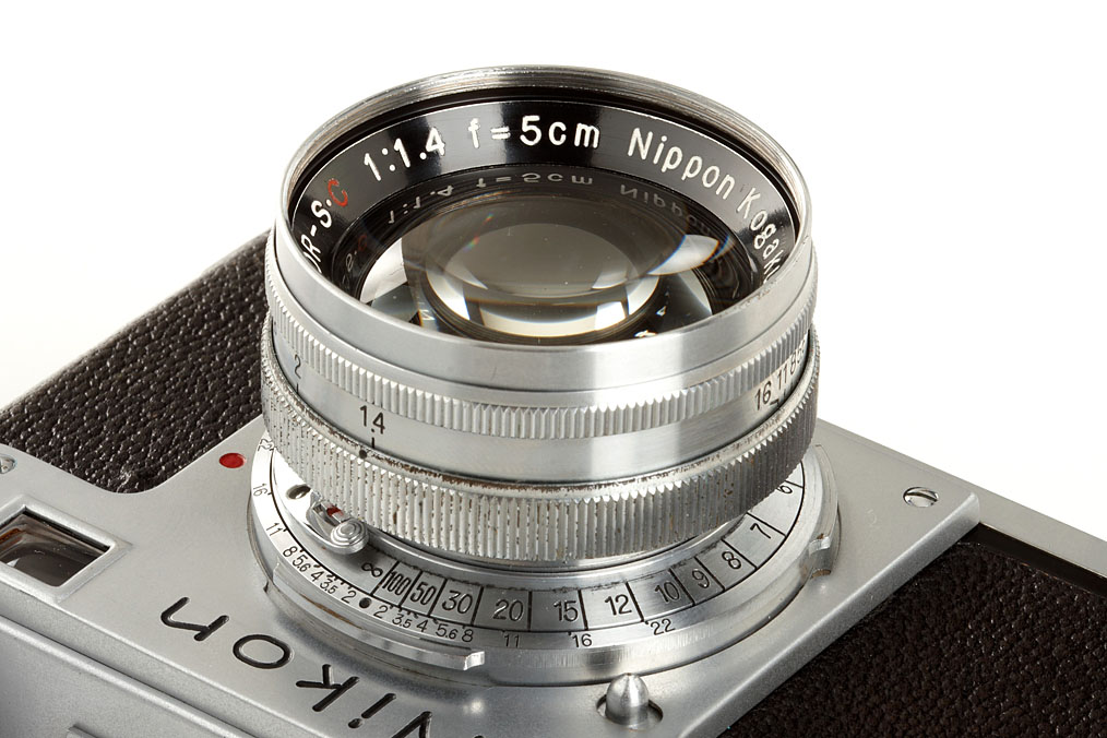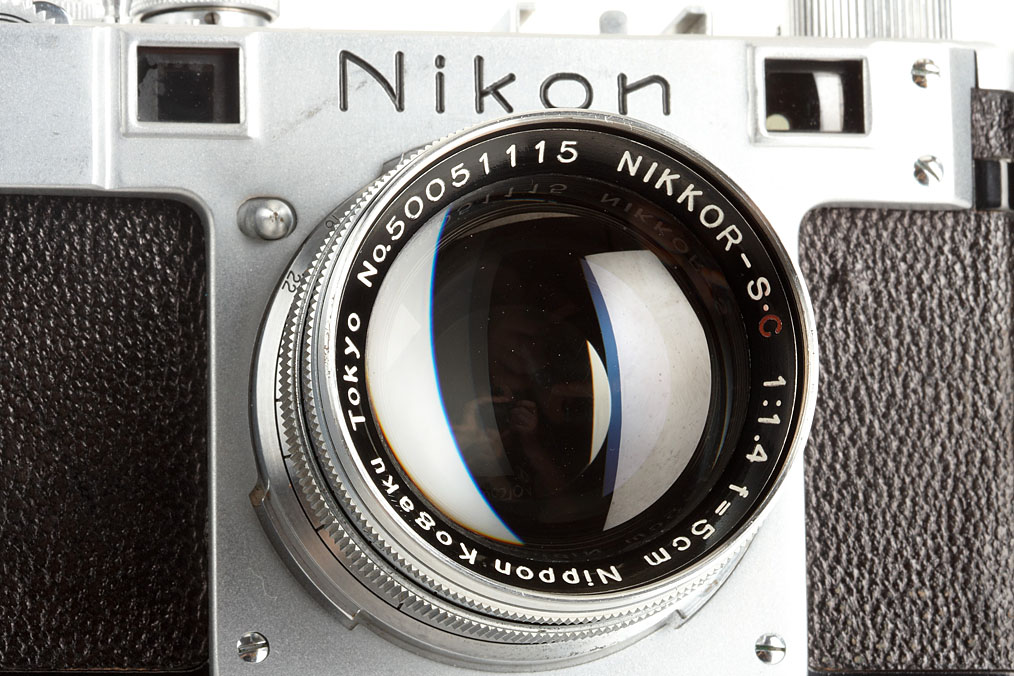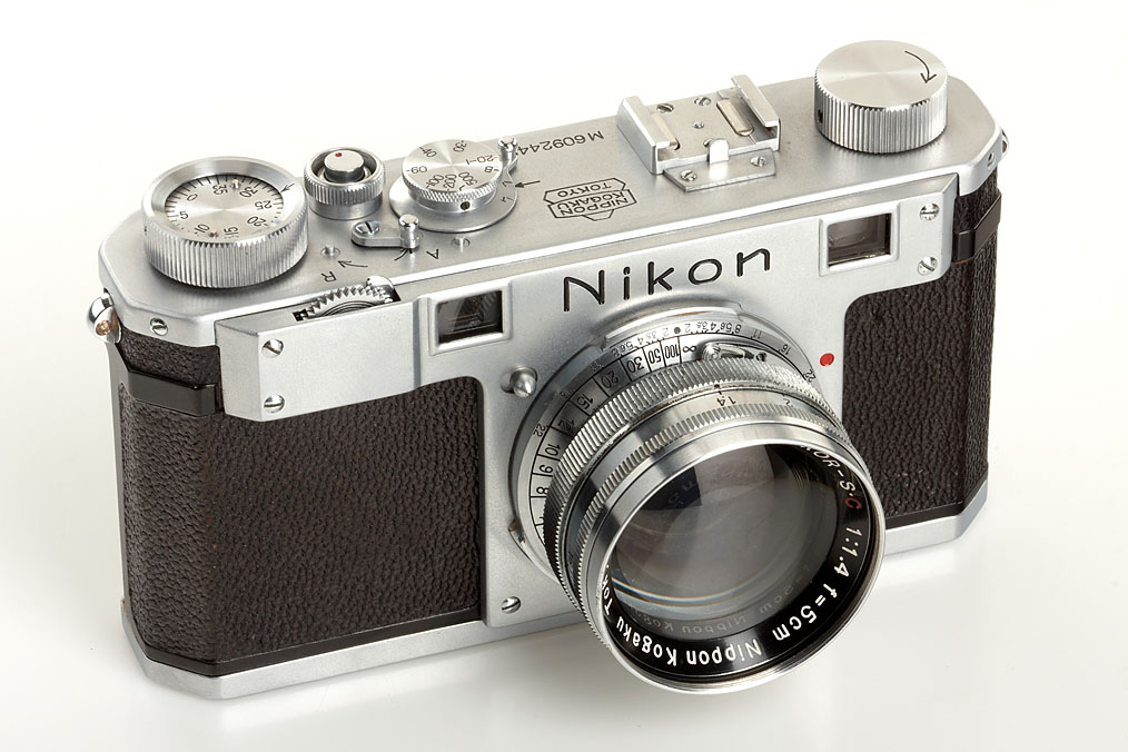 very late, unsynchronised Nikon M in very good original and working condition, same serial number in back door, on the back door leather marked 'MADE IN OCCUPIED JAPAN', with matching Nikkor-S.C 1.4/5cm no.50051115 (camera and lens with some small hand number engravings on each rear), chrome Tokyo cap, ever-ready case marked 'MADE IN OCCUPIED JAPAN', original Nikon M instruction booklet, original warranty card and inspection certificate of camera and lens with matching numbers dated 8 December 1950, invoice of a bought Nikon flash 1951, service distributors card - a sensational Nikon M outfit!