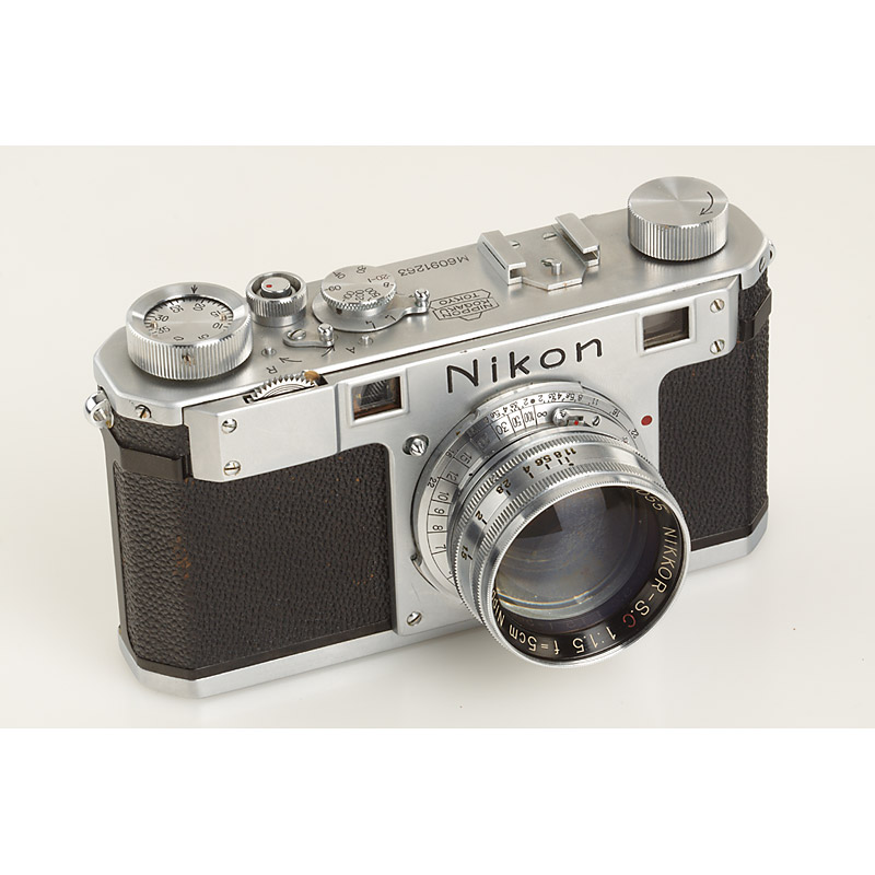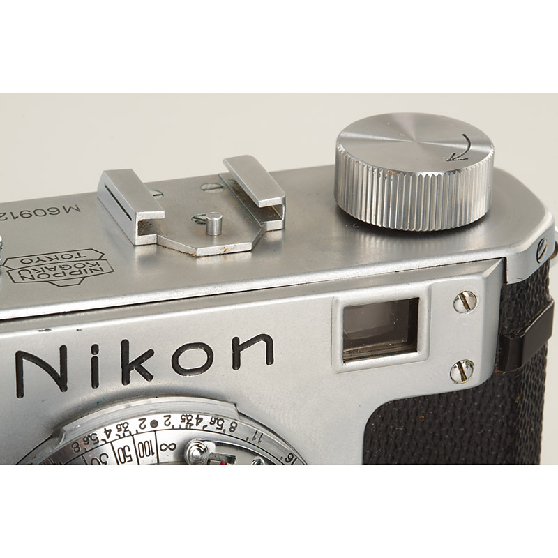 24x34mm, unsynchronised, completely original Nikon M in very fine original condition, fixed spool, 'MADE IN OCCUPIED JAPAN' engraved on base plate with identical serial number on back, with rare and very early (no. 5) chrome Nikkor-S.C 1.5/5cm no.9055 (chrome Tokyo cap), lens no.9059 is published in 'The Complete Nikon Rangefinder System' by Robert R. Rotoloni on pages 242-244 - ex Tad Sato collection