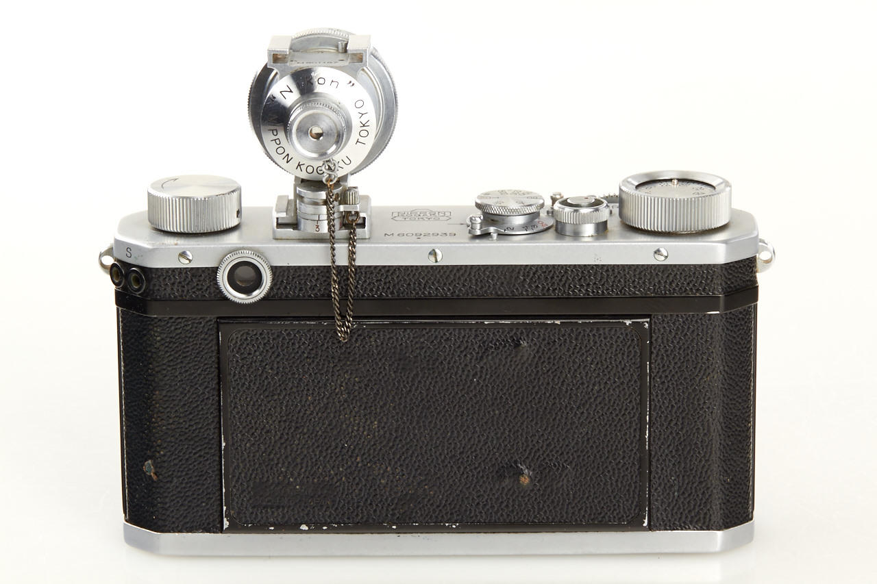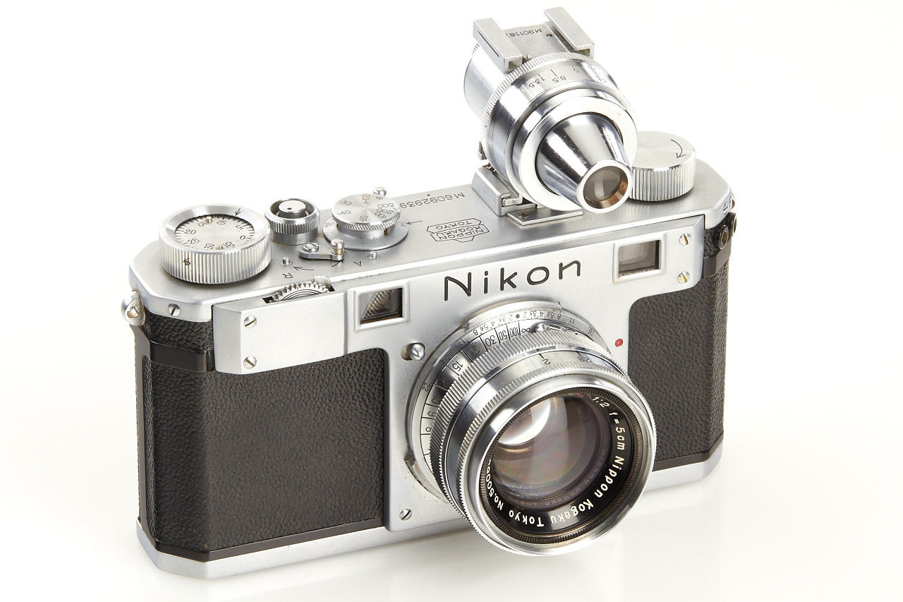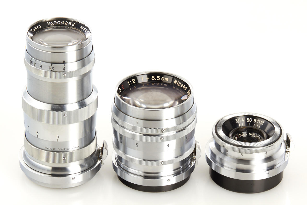 The famous Nikon M outfit illustrated on the front page of the book by Michael Wescott Loder 'The Nikon Camera in America 1946-1953' from the James Kelly collection including Nikon M no.M9062939 ('MADE IN OCCUPIED JAPAN' on leather of back door), with Nikkor-H.C 2/5cm no.50080786, inspection certificate and guarantee - both dated Jan.29,1951 - for camera and lens, everready case, W-Nikkor.C 3.5/3.5cm no.910808 with inspection card dated Febr.19,1951 and leather case, Nikkor-P.C 2/8.5cm no.286806 with hood, cap, leather case, Nikkor-Q.C 4/13.5cm no.904268 with hood, cap, inspection card from Dec.22,1950, leather case, matching Nikon Variframe finder no.M901187 with chain and eyepiece - the whole equipment which seems to be as acquired in early 1951 is in perfect near mint condition, the lenses clean and clear - the beautiful and extremely rare outfit comes with a copy the mentioned book