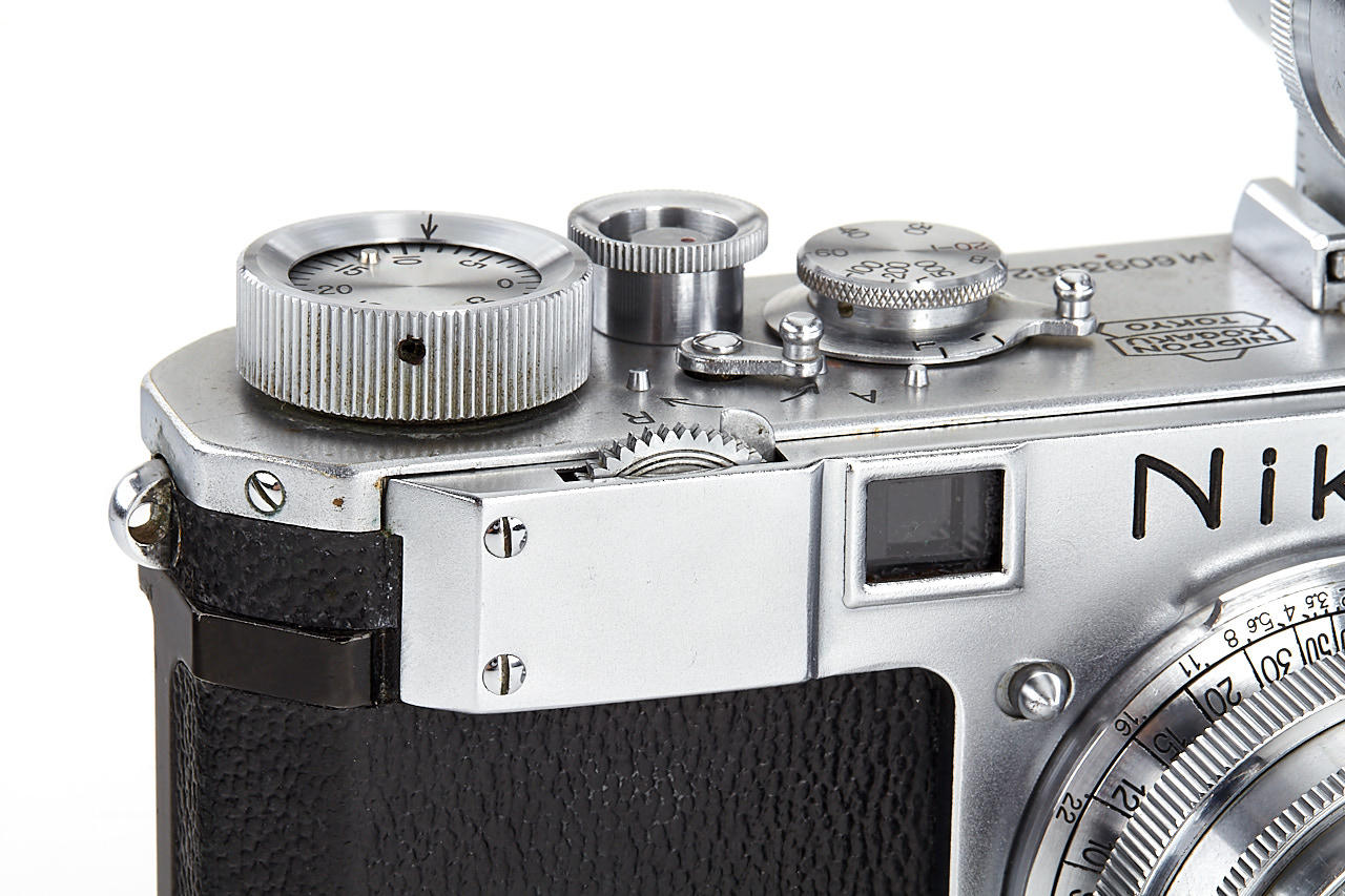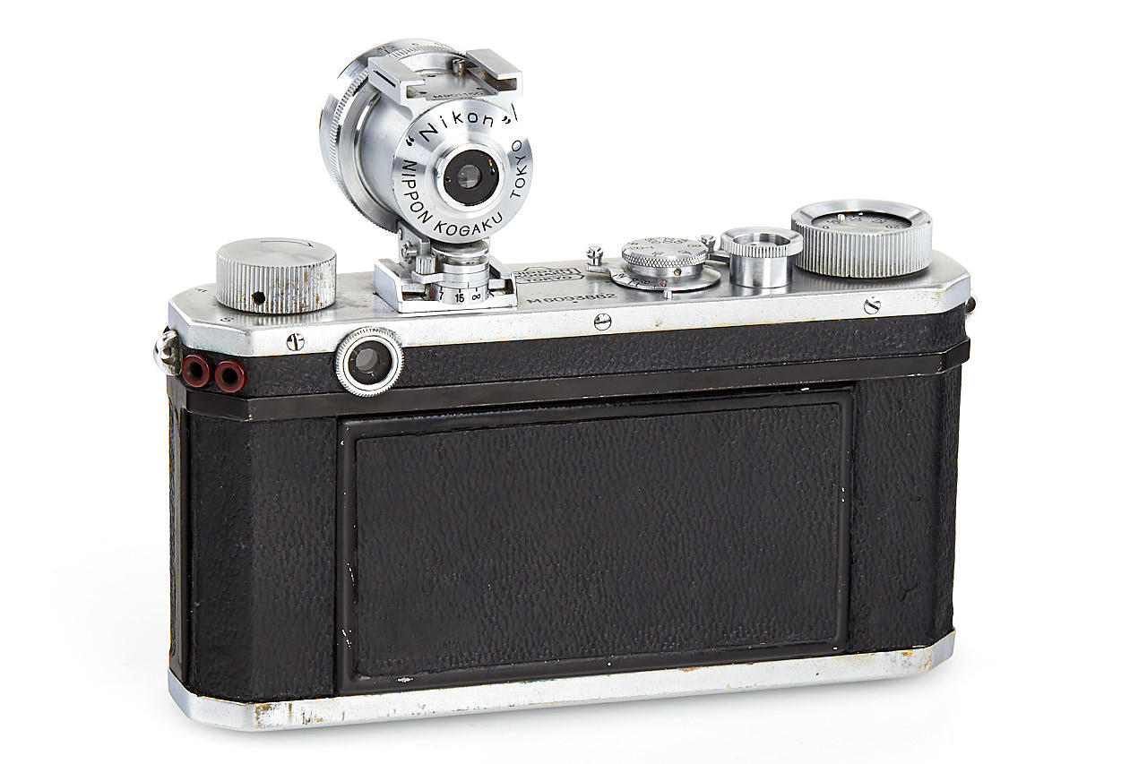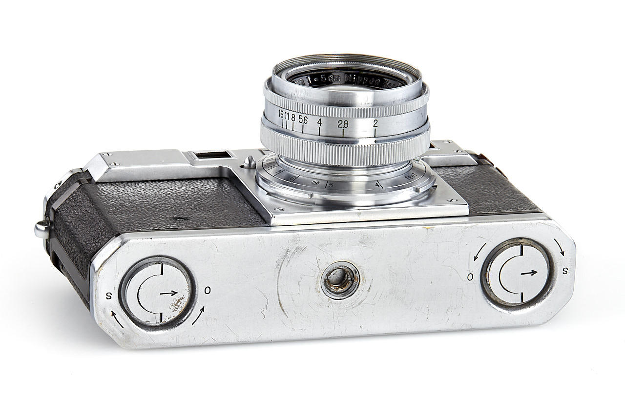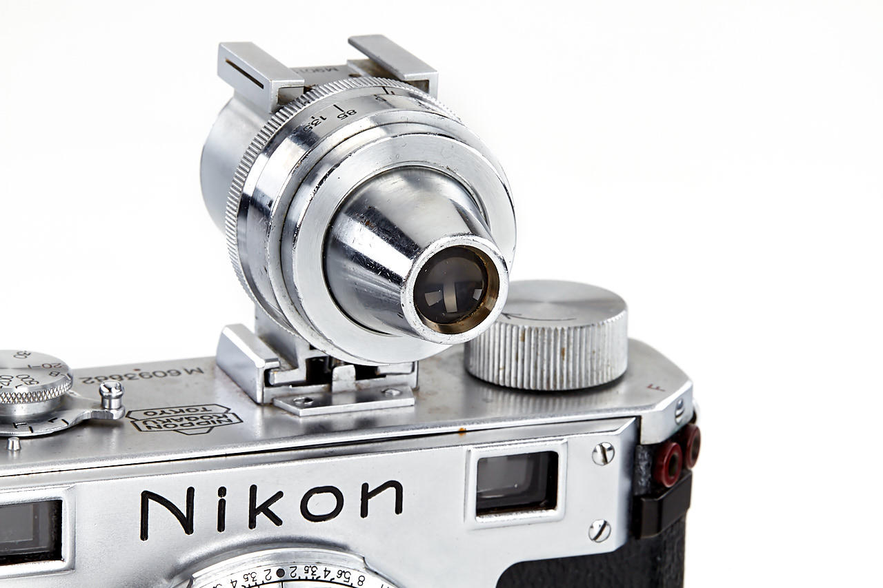 very late synchronized M (production ceased with serial no.M6094091) in fully working order, bright chrome finish, factory synchronized with original red plugs, matching back numbered 6093882, with MIOJ imprint in the leather, with matching and uncommon Tokyo Nikkor H-C 2/5cm no.620546 (minimal cleaning marks), featuring a chrome inne rfront ring within the filter rim, thus unseen so far, with Type 3 Variframe finder no.M901150 (need repair)