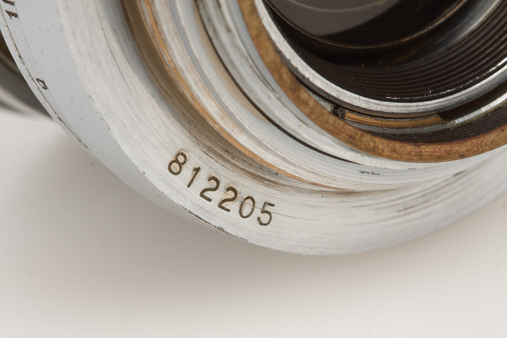 rare and very early collapsible Nikkor lens for M39, on rear engraved: 812205, feet scale, black painted Tokyo front cap, rear cap