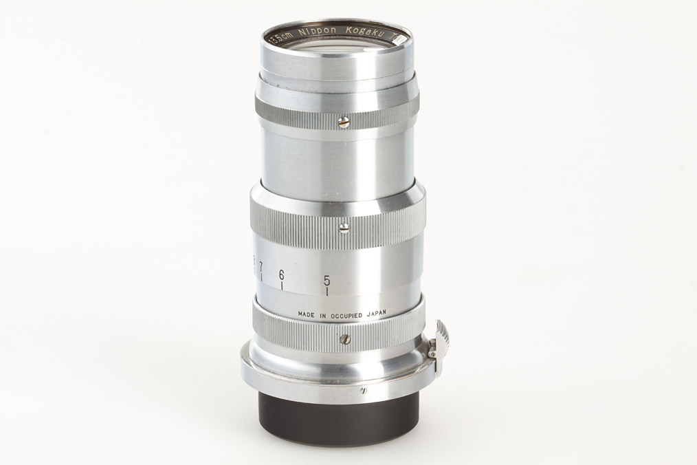 very rare first type Tokyo Nikkor for Nikon I, only approx 230 lenses made, MADE IN OCCUPIED JAPAN engraved on barrel, with original un-engraved hood and Nippon Kogaku Tokyo 13.5cm finder